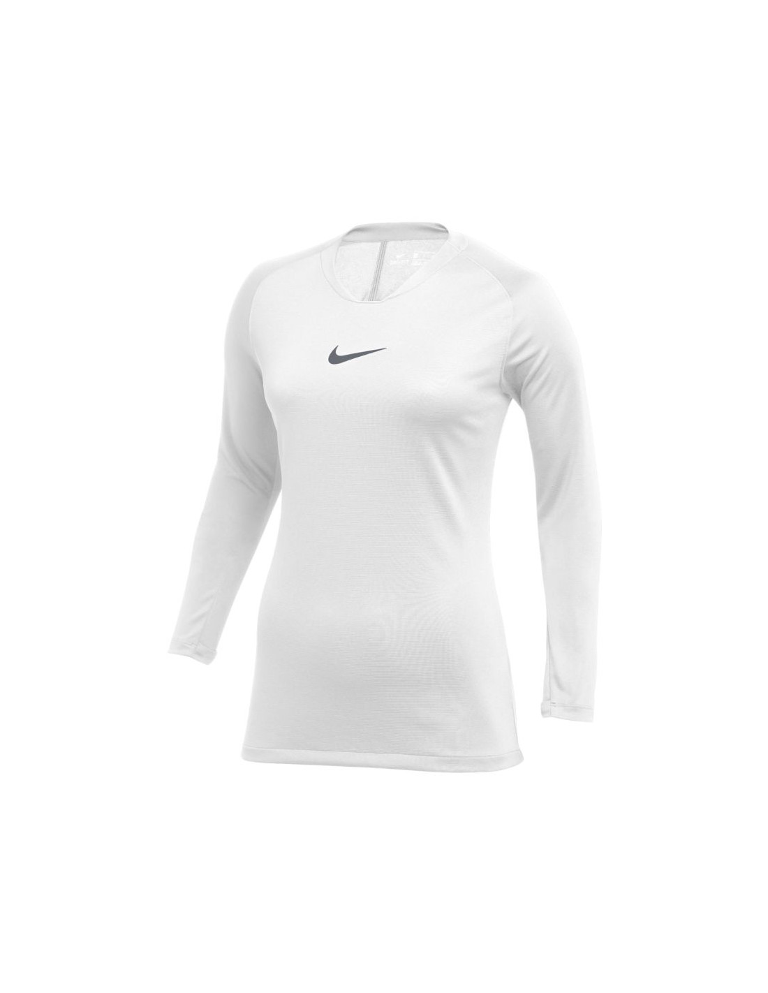 Koszulka damska Nike Dri-FIT Park First Layer biała AV2610 100 Damska koszulka z długim rękawem Nike jest świetnym rozwiązaniem jako pierwsza warstwa odzieży w chłodne dni. Zastosowana technologia Dri-FIT gwarantuje suchość i komfort podczas aktywności fizycznej, za sprawą skutecznego odprowadzania wilgoci na zewnątrz. Przylegający krój z raglanowymi rękawami. Otwory na kciuki, które nie są widoczne, kiedy nie są używane. Logo Swoosh. Materiał: 100% poliester