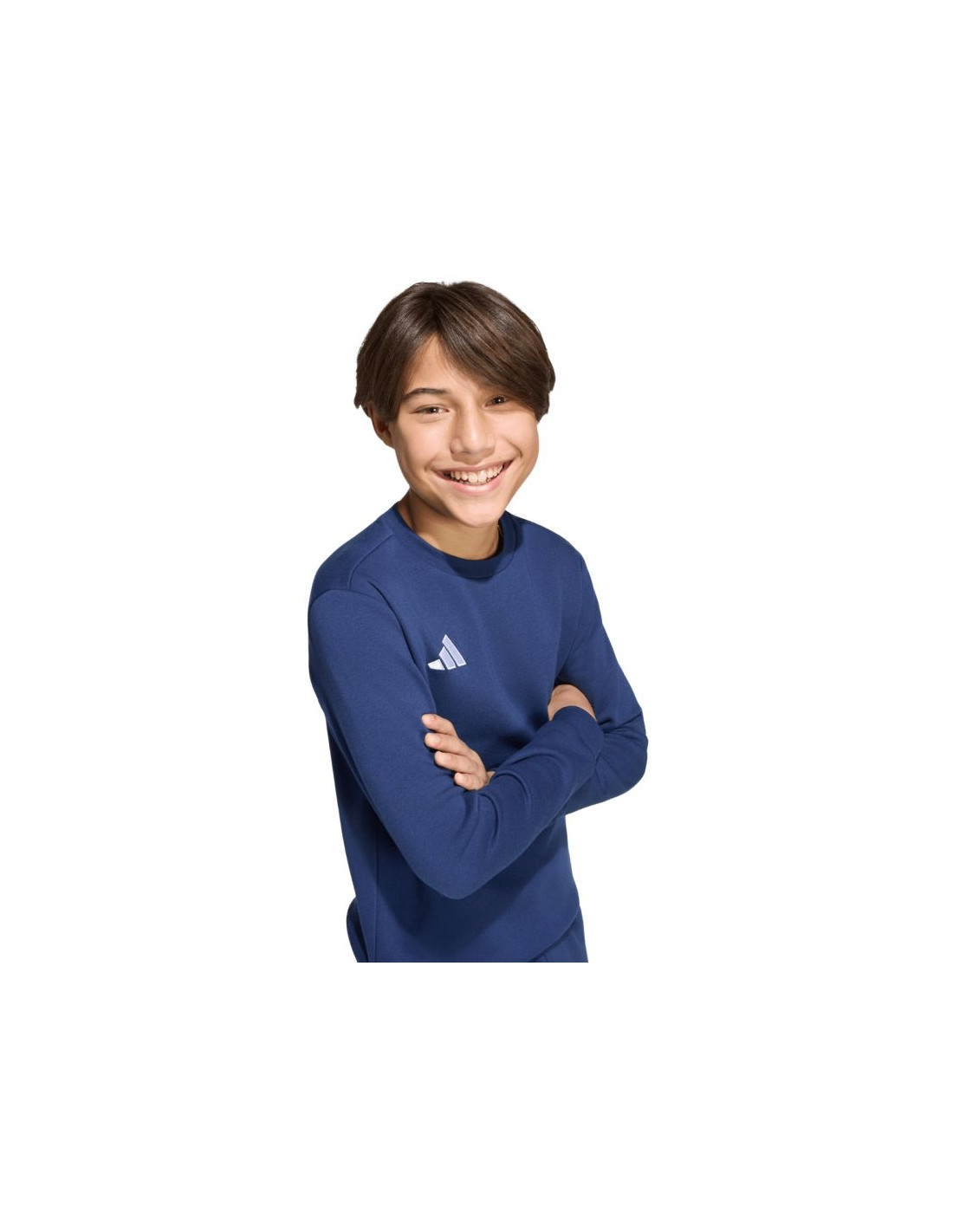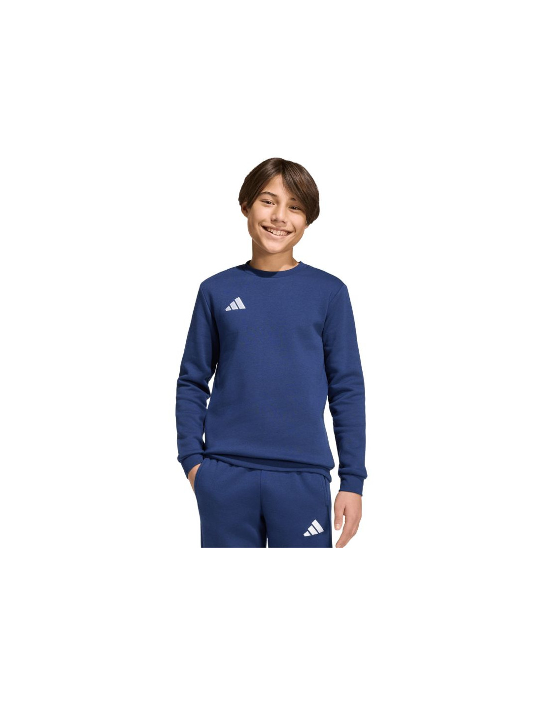 Bluza dla dzieci adidas Entrada 26 Sweat Top granatowa JZ6552 Bluza dla dzieci adidas sprawdzi się na boisku i poza nim. Fason pochodzi z piłkarskiej linii Entrada. Regularny krój. Dominująca bawełna wspiera wentylację. Dodatek poliestrowych włókien pochodzi z recyklingu. Polarowe wnętrze. Dół i mankiety wykończono elastycznymi ściągaczami. Haftowane logo. Materiał: 70% bawełna, 30% poliester z recyklingu