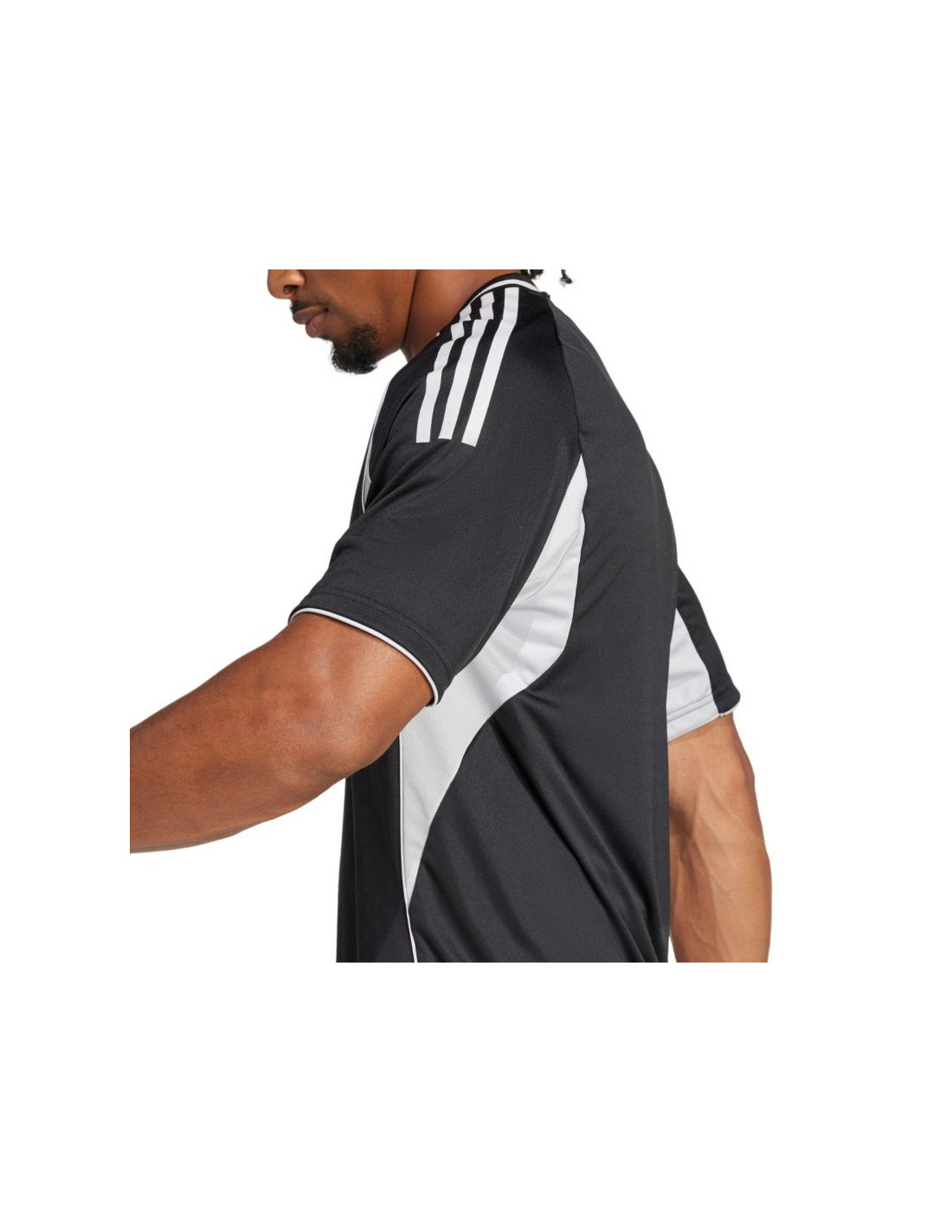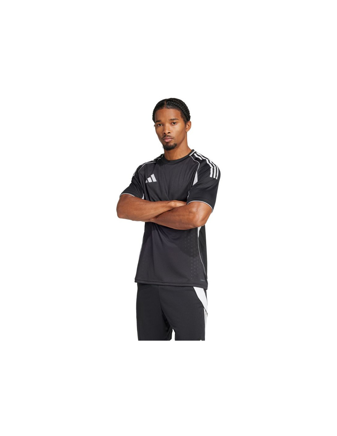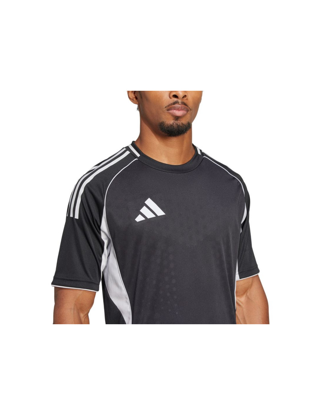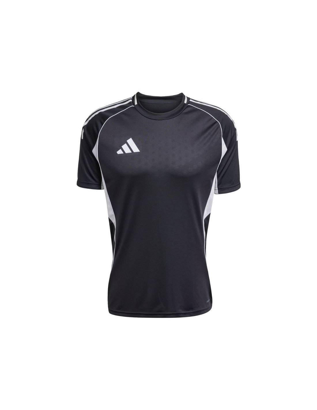 Koszulka męska adidas Tiro 25 Competition Match czarna JF6085 Koszulka męska adidas sprawdzi się podczas meczowych rozgrywek piłkarskich. Dopasowany krój. Technologia Aeroready oprowadza nadmiar wilgoci. Boczne panele z materiału o siateczkowej strukturze. Włókna powstały w procesie recyklingu. Logo naniesione nanotransferem. Fason z wytłaczaną grafiką inspirowaną profesjonalnymi klubami. Materiał: 100% poliester z recyklingu