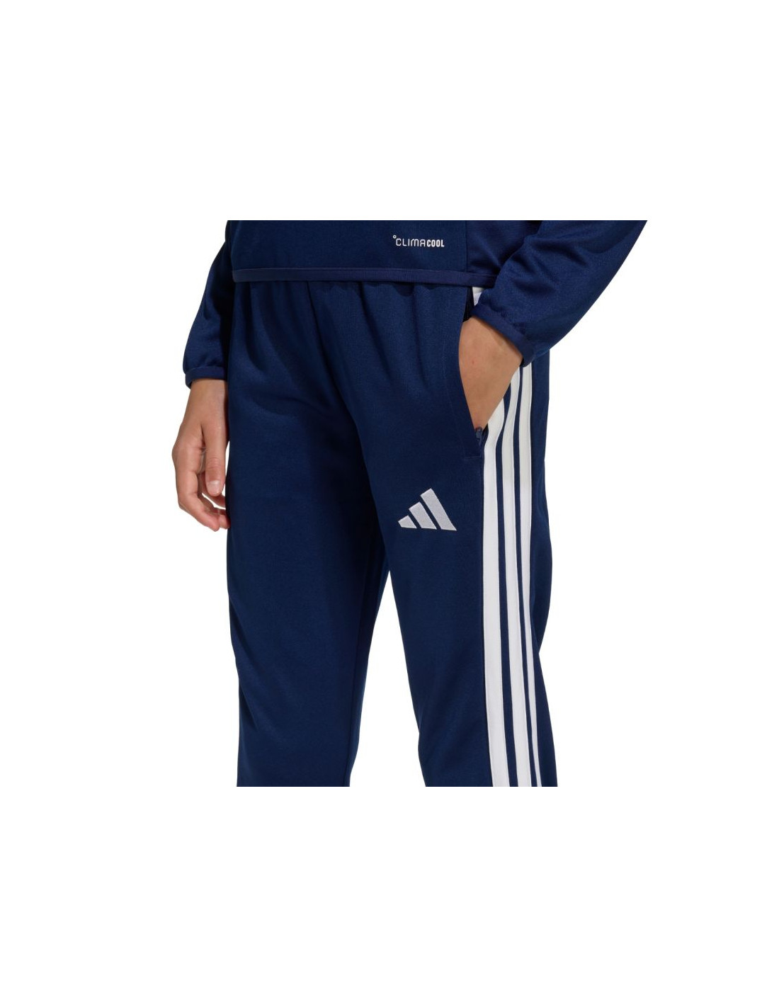 Spodnie dla dzieci adidas Tiro 26 League Training Slim granatowe JY7118 Spodnie dla dzieci adidas z piłkarskiej kolekcji Tiro sprawdzą się podczas treningów. Dzianina o podwójnym splocie i szybkoschnących właściwościach. Technologia Climacool pochłania i odprowadza pot, zapewniając uczucie chłodu i suchości. Dopasowany krój. Średnio zabudowana, elastyczna talia ze sznurkiem do regulacji. Boczne kieszenie zapinane na suwaki. Nogawki wykończone suwakami. Materiał: 100% poliester pochodzący z recyklingu