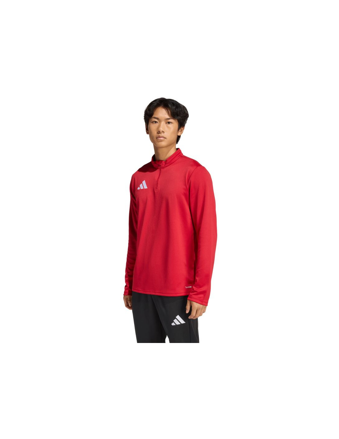 Bluza męska adidas Entrada 26 Training Top czerwona JZ6650 Bluza męska adidas sprawdzi się podczas treningów. Dopasowany krój. Zamek do połowy piersi. Patka chroniąca podbródek. Technologia Climacool pochłania i odprowadza pot. Szybkoschnący materiał. Haftowane logo. Stójka. Materiał: 100% poliester z recyklingu
