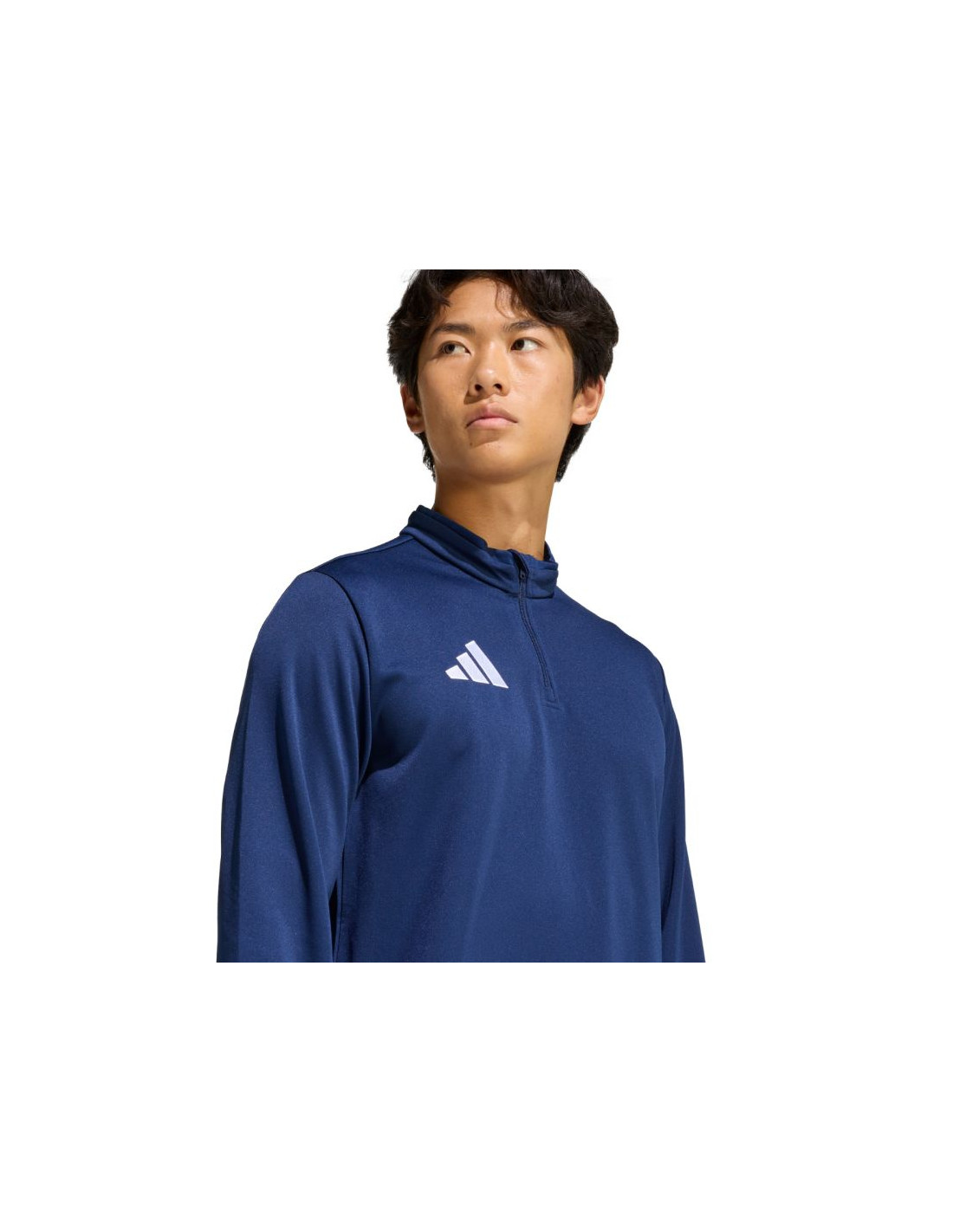 Bluza męska adidas Entrada 26 Training Top granatowa JZ6651 Bluza męska adidas sprawdzi się podczas treningów. Dopasowany krój. Zamek do połowy piersi. Patka chroniąca podbródek. Technologia Climacool pochłania i odprowadza pot. Szybkoschnący materiał. Haftowane logo. Stójka. Materiał: 100% poliester z recyklingu