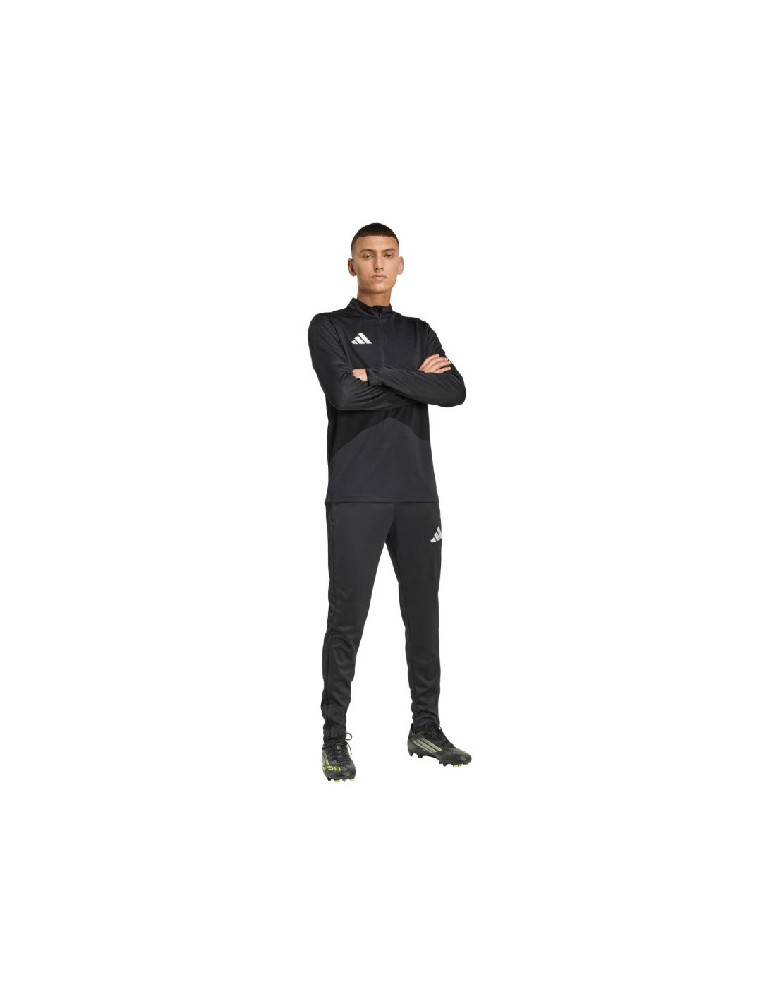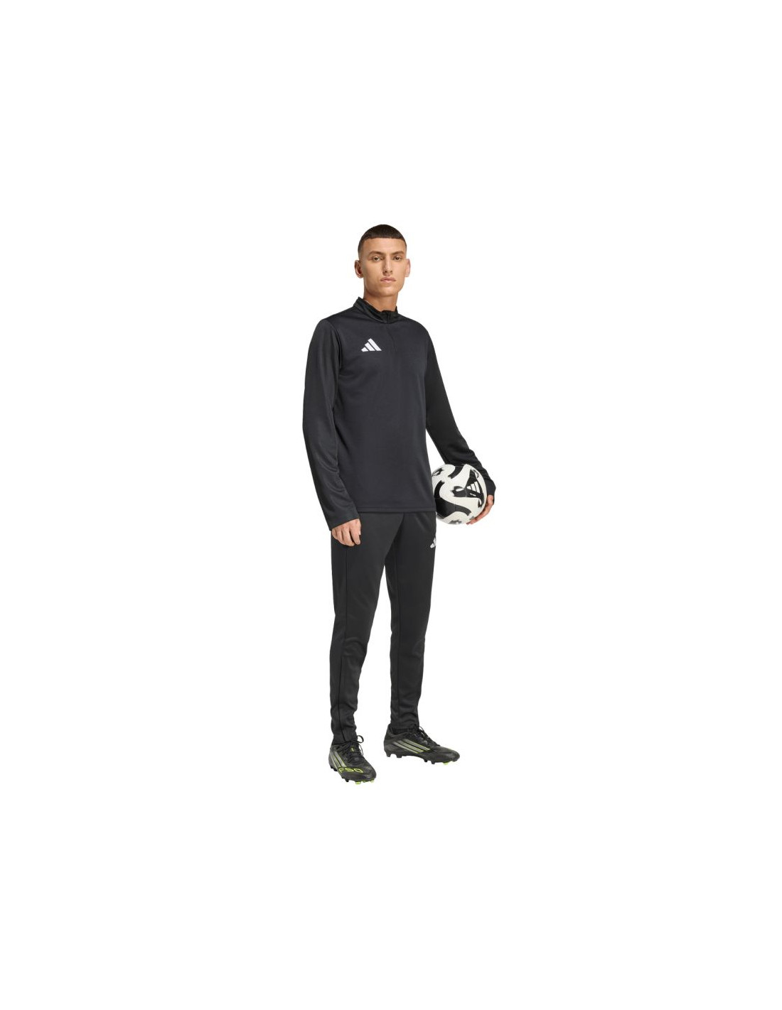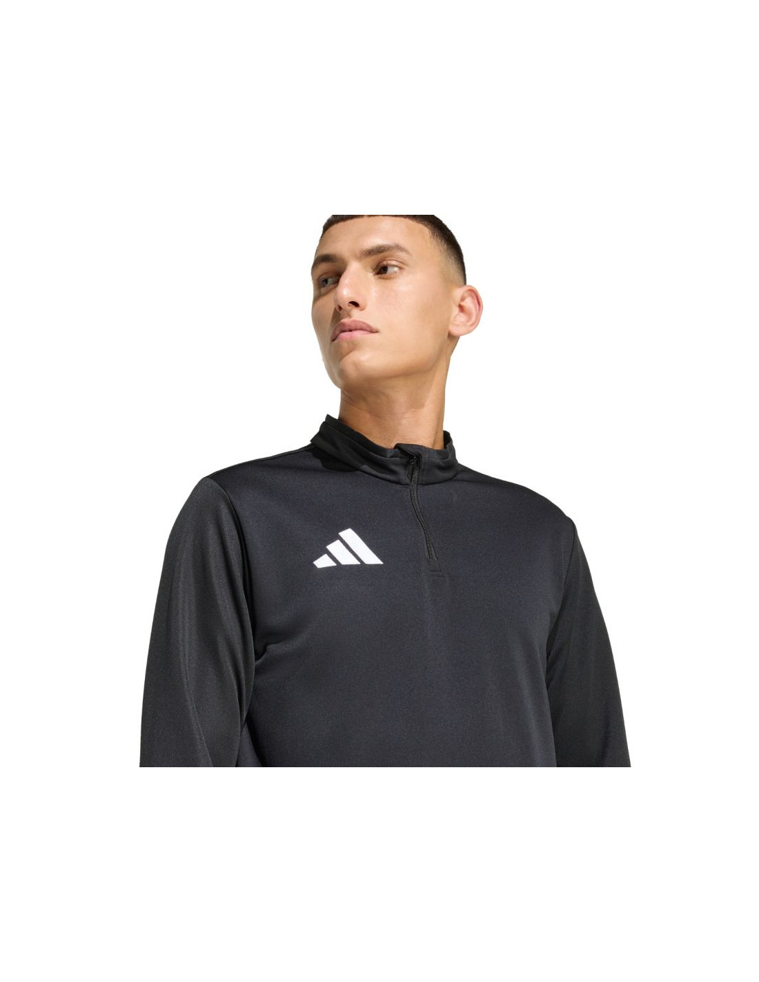 Bluza męska adidas Entrada 26 Training Top czarna JZ6658 Bluza męska adidas sprawdzi się podczas treningów. Dopasowany krój. Zamek do połowy piersi. Patka chroniąca podbródek. Technologia Climacool pochłania i odprowadza pot. Szybkoschnący materiał. Haftowane logo. Stójka. Materiał: 100% poliester z recyklingu