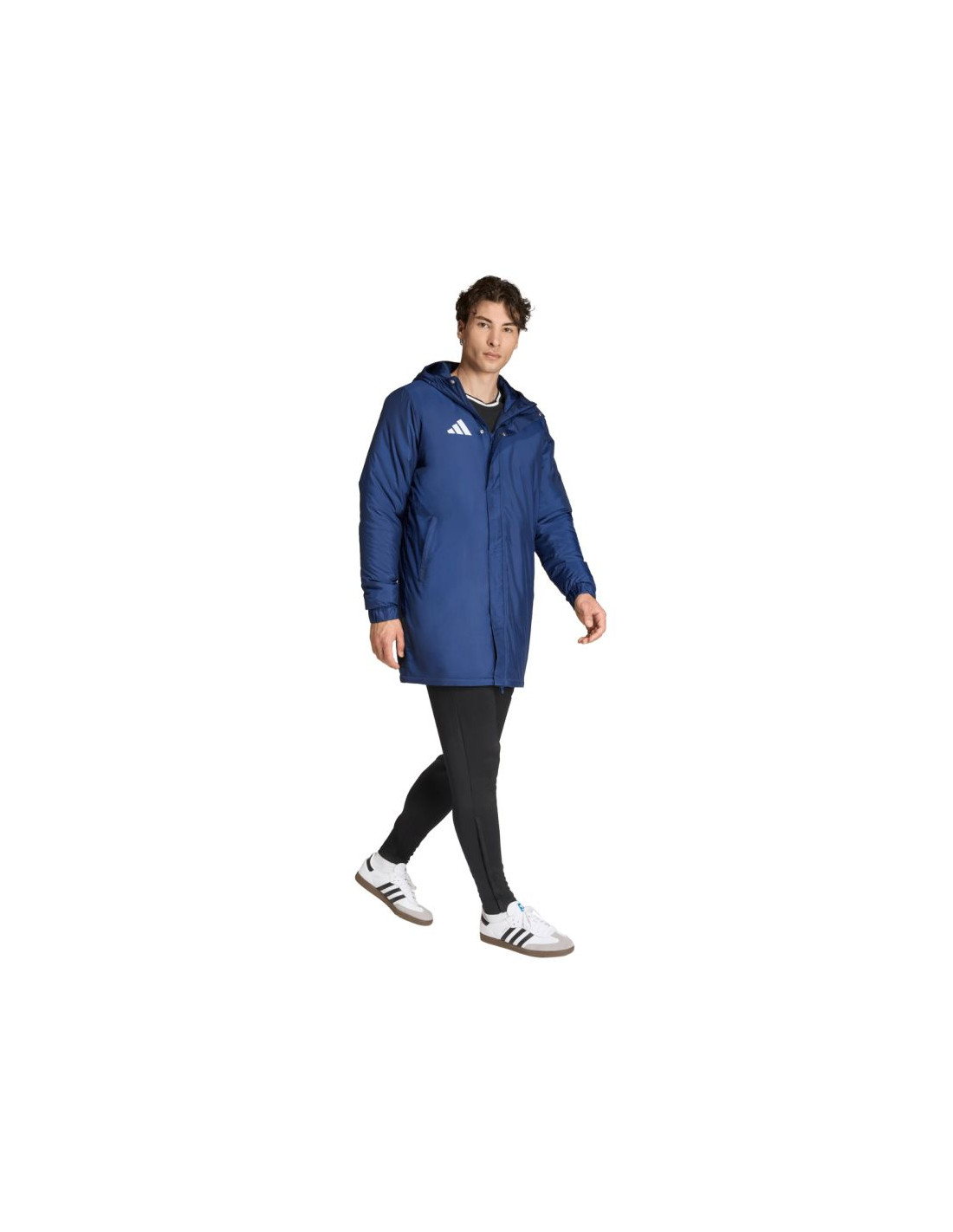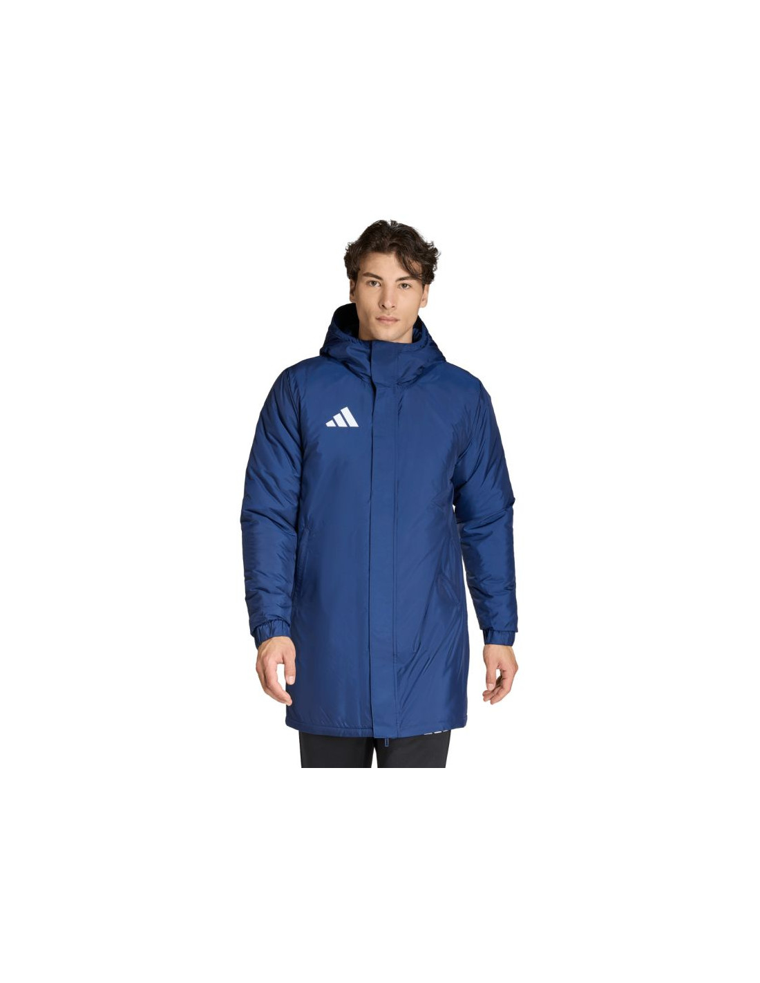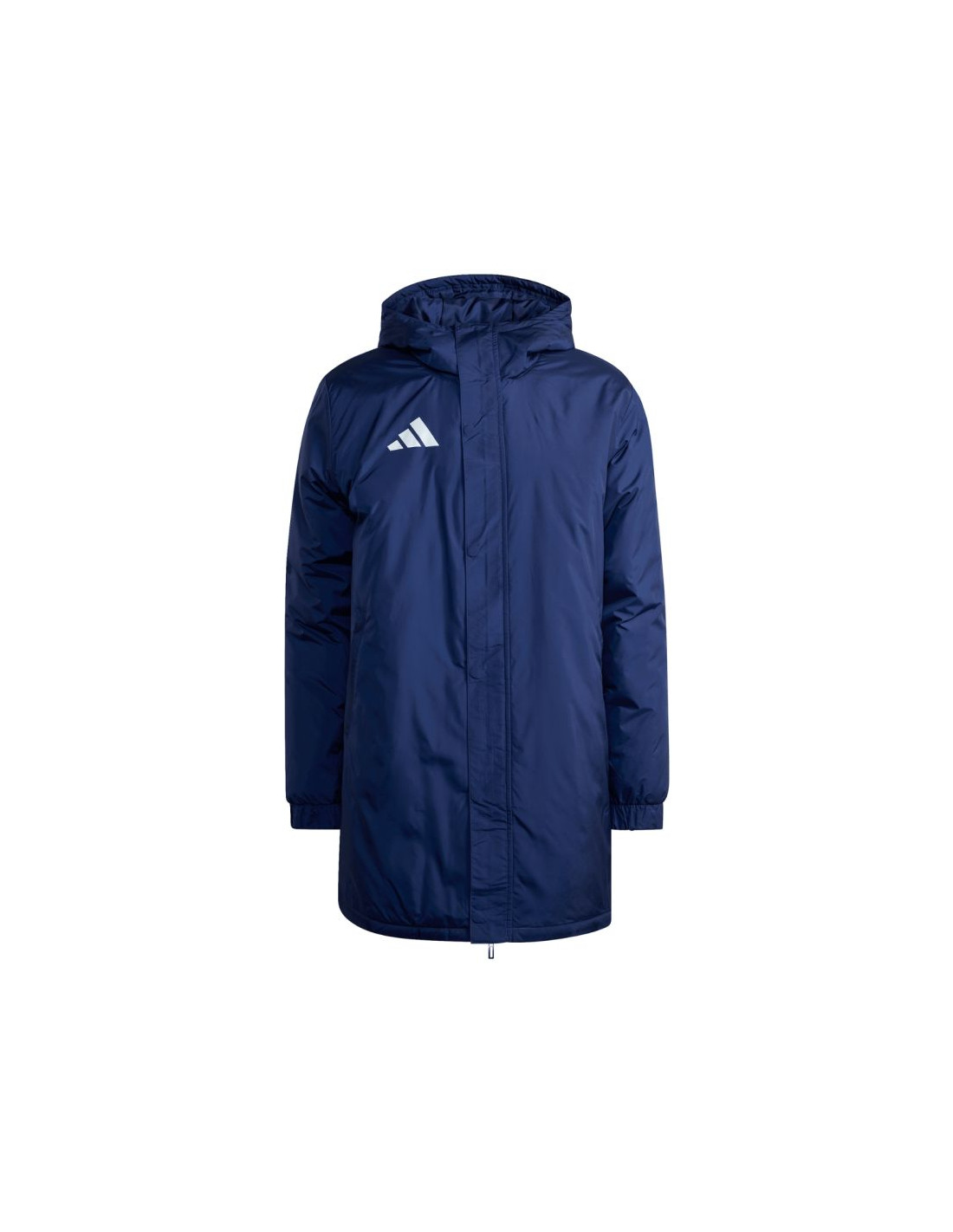 Kurtka męska adidas Entrada 26 Stadium granatowa JZ6669 Kurtka dla mężczyzn adidas została stworzona z myślą o odpoczynku za linią boczną boiska. Rozpinany model o regularnym kroju. Nieodpinany kaptur. Zapinane kieszenie boczne. Rękawy wykończone ściągaczami. Klapa przeciwsztormowa na zatrzaski. Syntetyczne ocieplenie. Materiał wierzchni: 100% poliester z recyklinguWypełnienie: 100% poliester z recyklingu