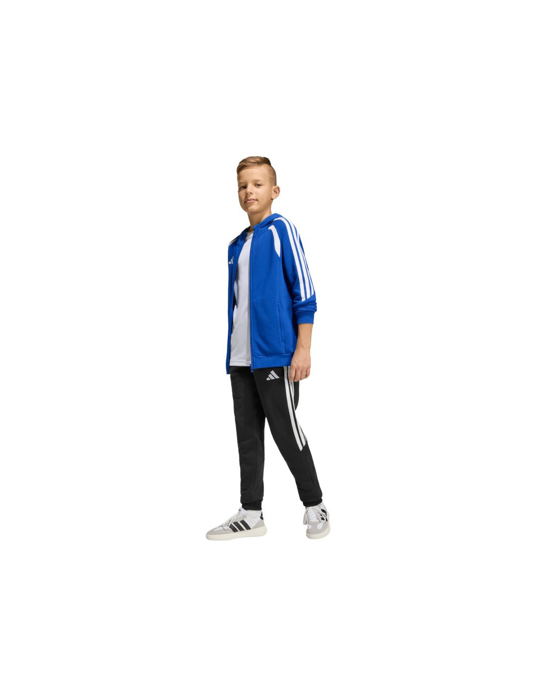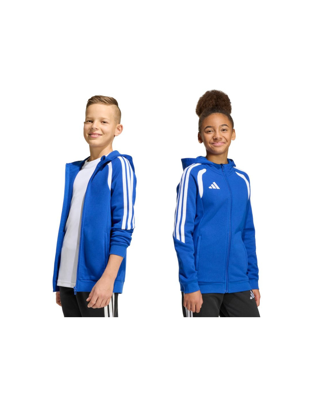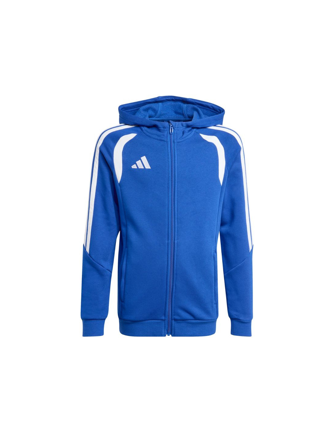 Bluza dla dzieci adidas Tiro 26 League Sweat Full Zip Hoodie niebieska KF9102 Bluza piłkarska dla dzieci adidas Tiro to obowiązkowy element garderoby każdego, młodego piłkarza. Miękka w dotyku konstrukcja będąca połączeniem oddychającej bawełny i trwałego poliestru nie powoduje podrażnień na skórze. Klasyczny krój pozwala zachować pełen zakres ruchów. Zamek na całej długości. zapinane kieszenie boczne. Zintegrowany kaptur bez regulacji chroniący głowę przed niekorzystnymi warunkami atmosferycznymi. Ściągacze przy mankietach oraz u dołu bluzy. Wyszywane logo producenta. Materiał: 70% bawełna, 30% poliester pochodzący z recyklingu