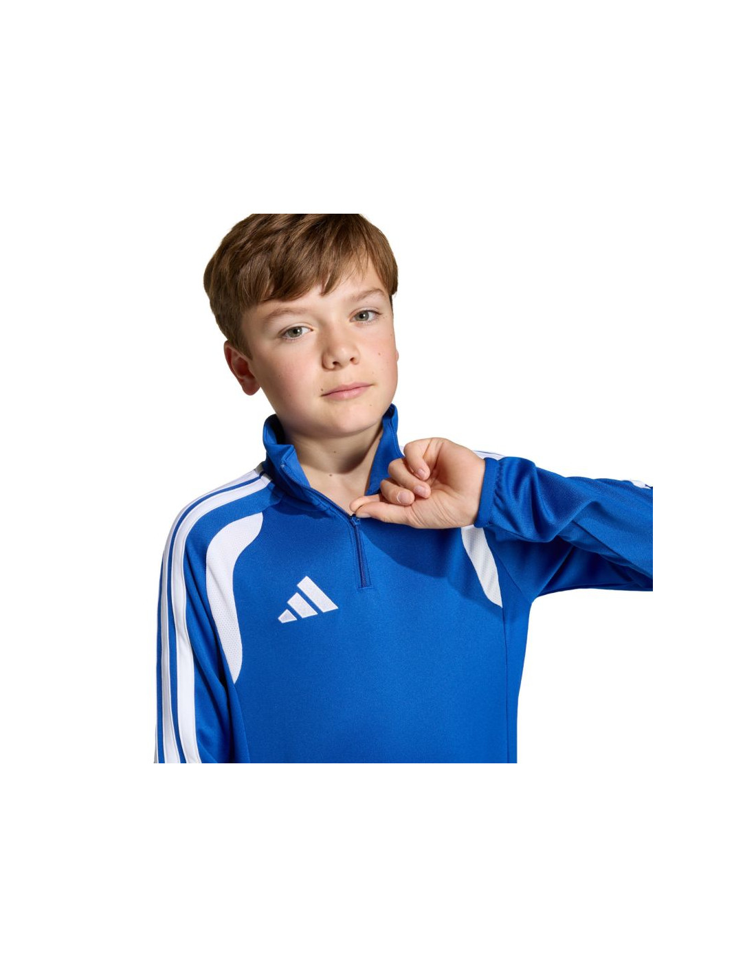 Bluza dla dzieci adidas Tiro 26 League Training Top niebiesko-biała JY7162 Bluza piłkarska adidas przeznaczona dla dzieci sprawdzi się podczas treningów. Wykończony patką chroniącą podbródek, krótki zamek. Dopasowany krój. Technologia Climacool jest funkcjonalnym rozwiązaniem, które zapewnia uczucie chłodu i suchości oraz skupienie na grze. Dół oraz mankiety wykończono elastyczną lamówką. Kontrastowe, siateczkowe wstawki. Paski na rękawach. Subtelne logo na piersi. Materiał: 100% poliester z recyklingu