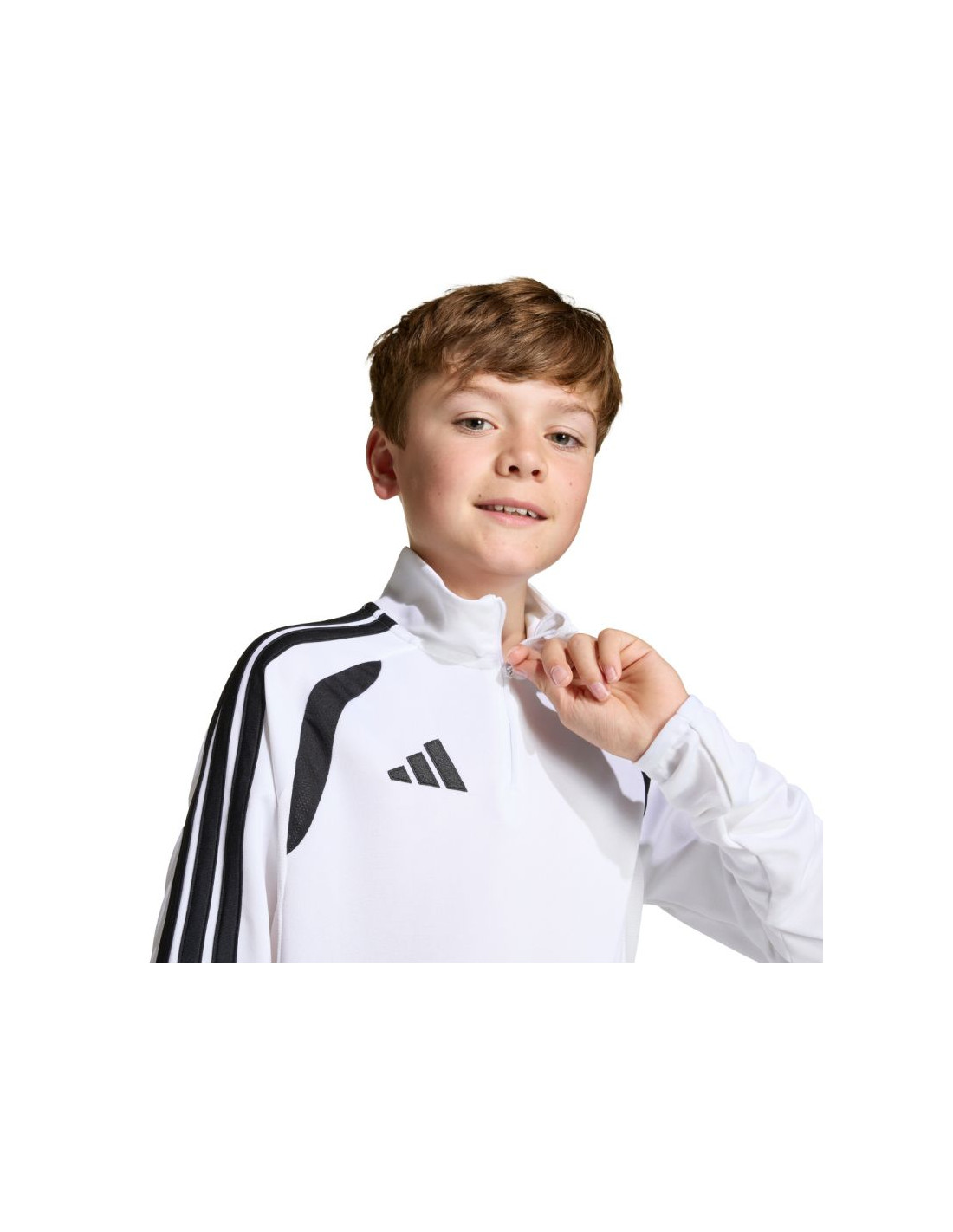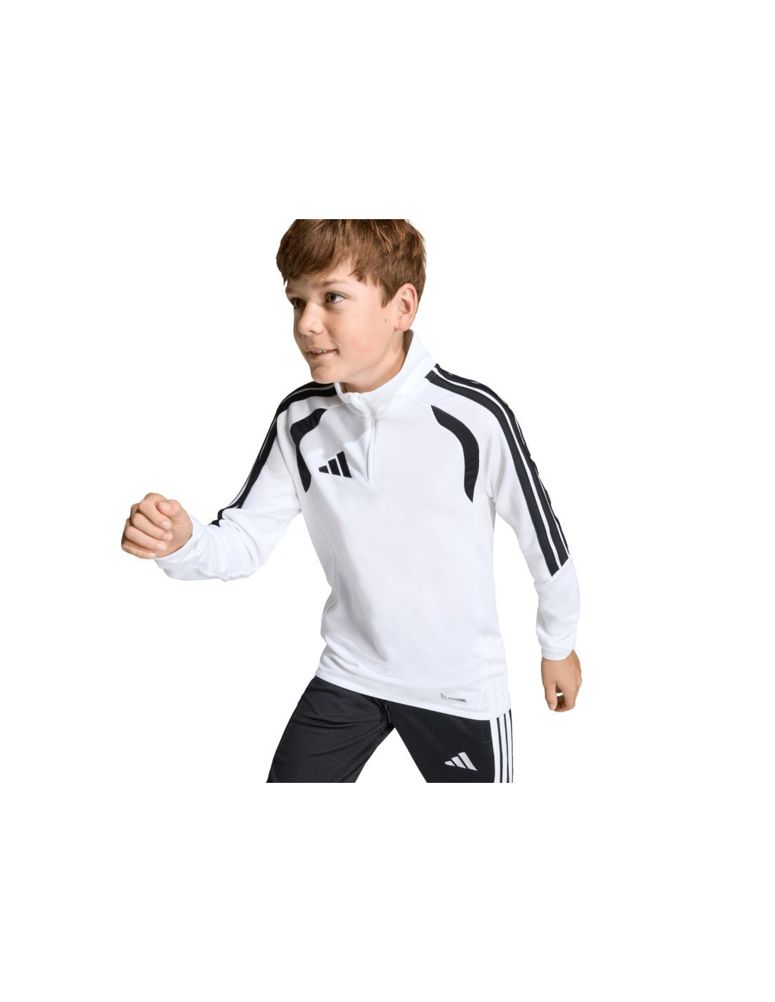 Bluza dla dzieci adidas Tiro 26 League Training Top biała KC3696 Bluza piłkarska adidas przeznaczona dla dzieci sprawdzi się podczas treningów. Wykończony patką chroniącą podbródek, krótki zamek. Dopasowany krój. Technologia Climacool jest funkcjonalnym rozwiązaniem, które zapewnia uczucie chłodu i suchości oraz skupienie na grze. Dół oraz mankiety wykończono elastyczną lamówką. Kontrastowe, siateczkowe wstawki. Paski na rękawach. Subtelne logo na piersi. Materiał: 100% poliester z recyklingu