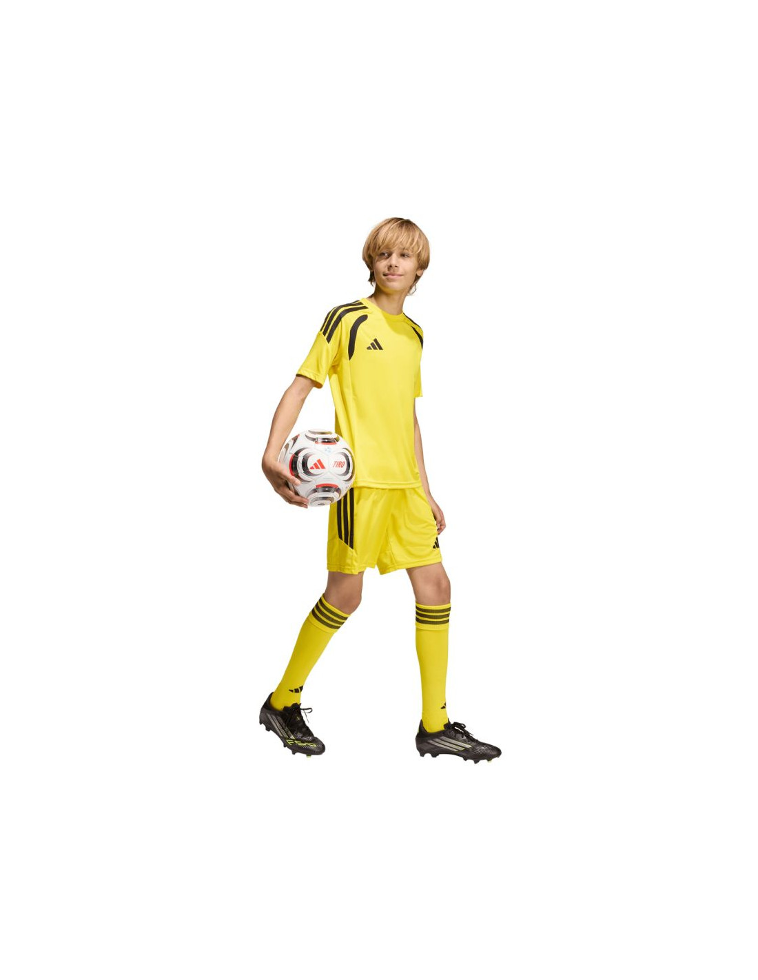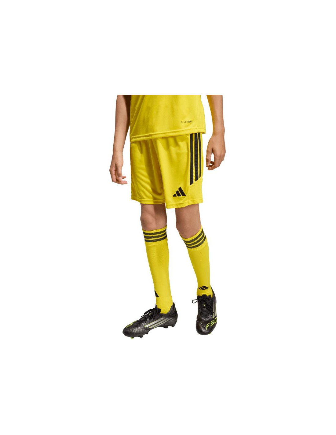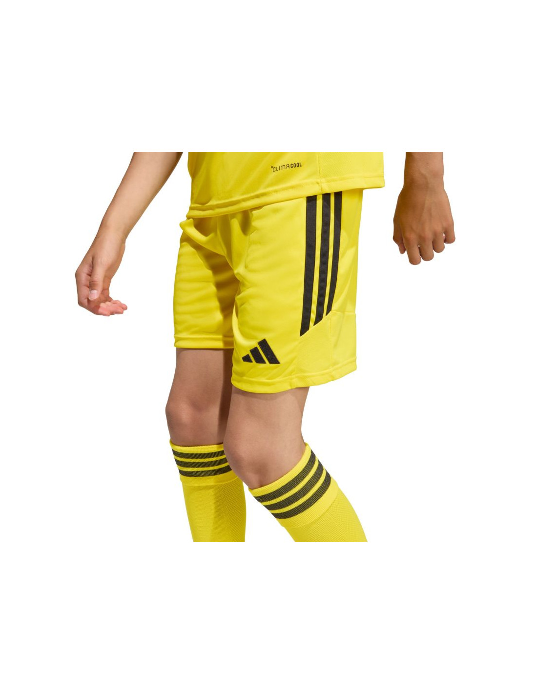 Spodenki dla dzieci adidas Tiro 26 League żółte KA8822 Dziecięce spodenki adidas sprawdzą się podczas decydujących rozgrywek. Model pochodzi z linii Tiro. Elastyczna talia regulowana wewnętrznym sznurkiem. Technologia Climacool. Paski po bokach. Niewielkie, wyszywane logo. Materiał: 100% poliester pochodzący z recyklingu