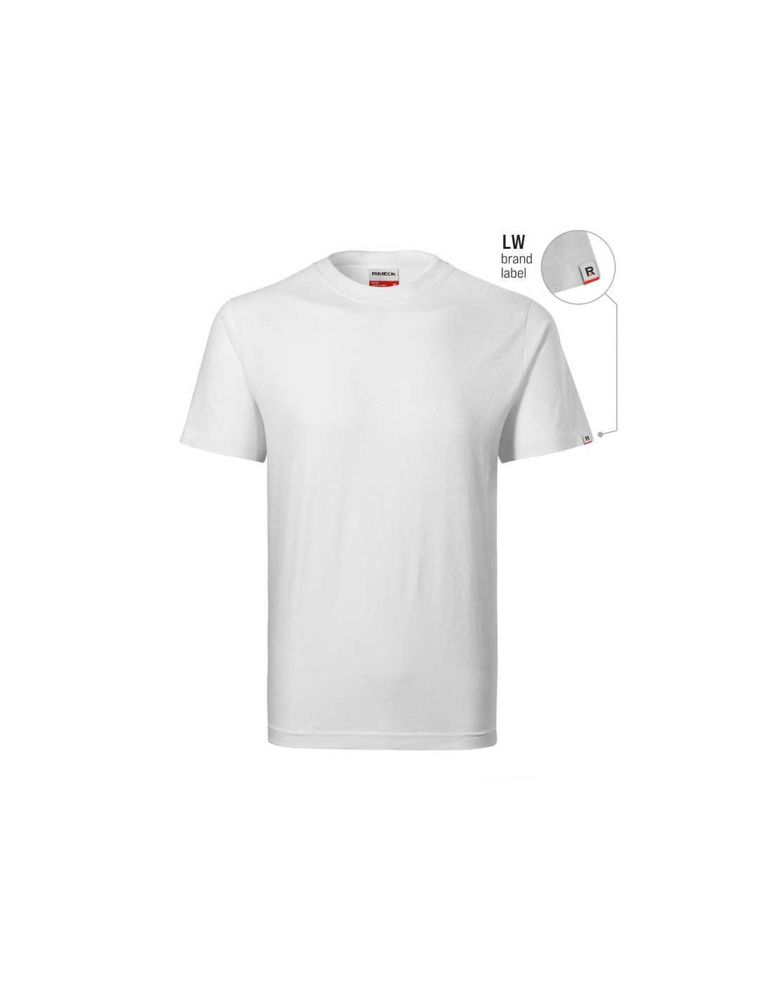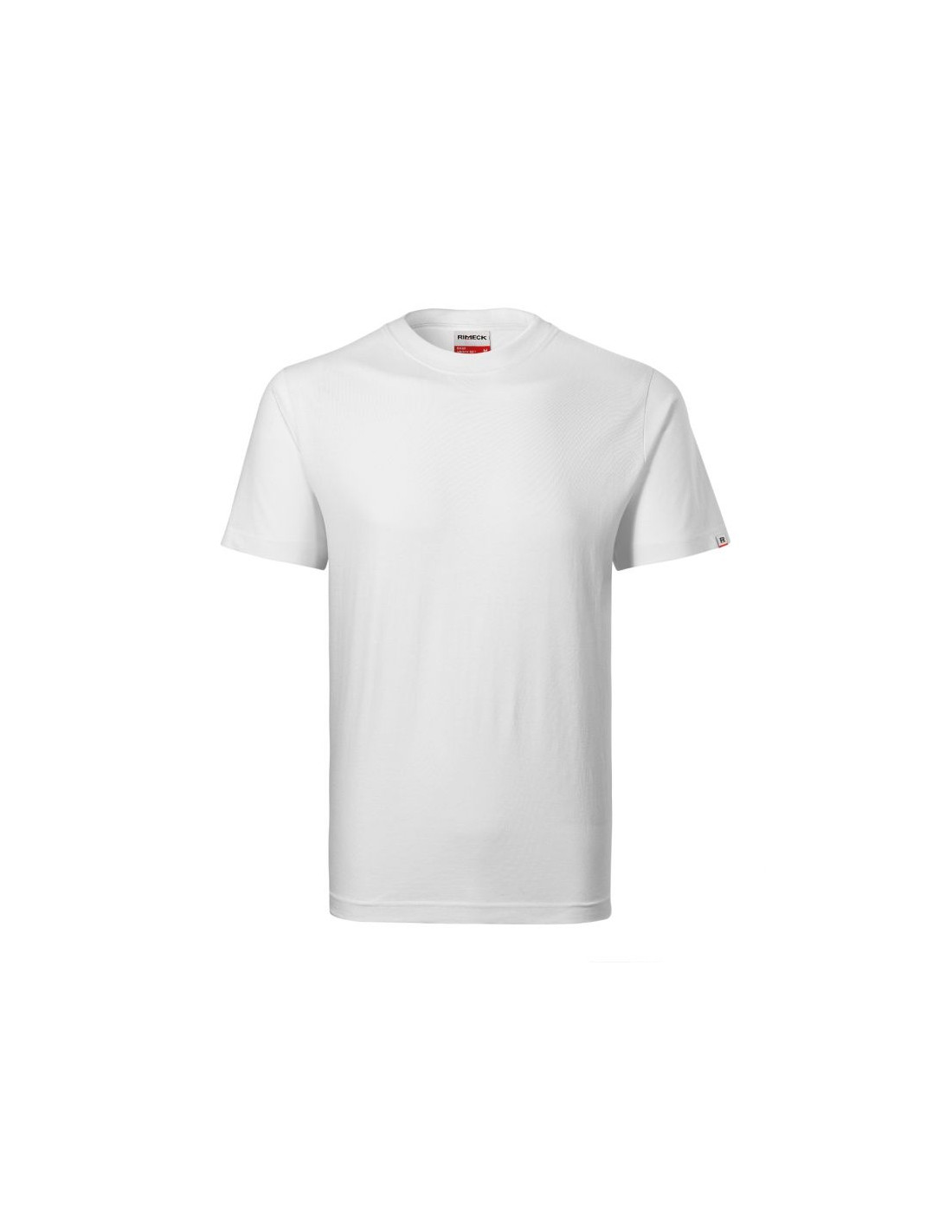 Single Jersey, 100 % bawełna (kolor 12 skład materiału - 85 % bawełna, 15 % wiskoza) trwały, idealny do środowisk pracy, bez szwów bocznych, dekolt wykończony dzianiną ściągaczową 1:1 z dodatkiem 5 % elastanu, taśma wzmacniająca na ramionach, Produkt dostępny w dwóch wersjach: z metką firmową na obszyciu rękawa lub bez (patrz zestawienie kolorów). Opcja bez metki tylko do wyczerpania zapasów.