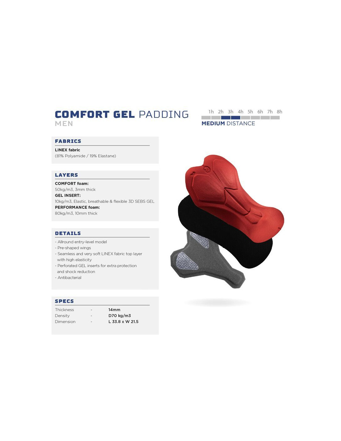 Spodnie kolarskie Fast mają wkładkę Cmofort Gel, która jest odpowiednia na średnie i długie dystanse. Żelowe wkładki redukują wibracje i zapewniają wygodę. Płynne przejścia objętości pianki w połączeniu z miękką warstwą wierzchnią LINEX zapewniają jeszcze większy komfort.