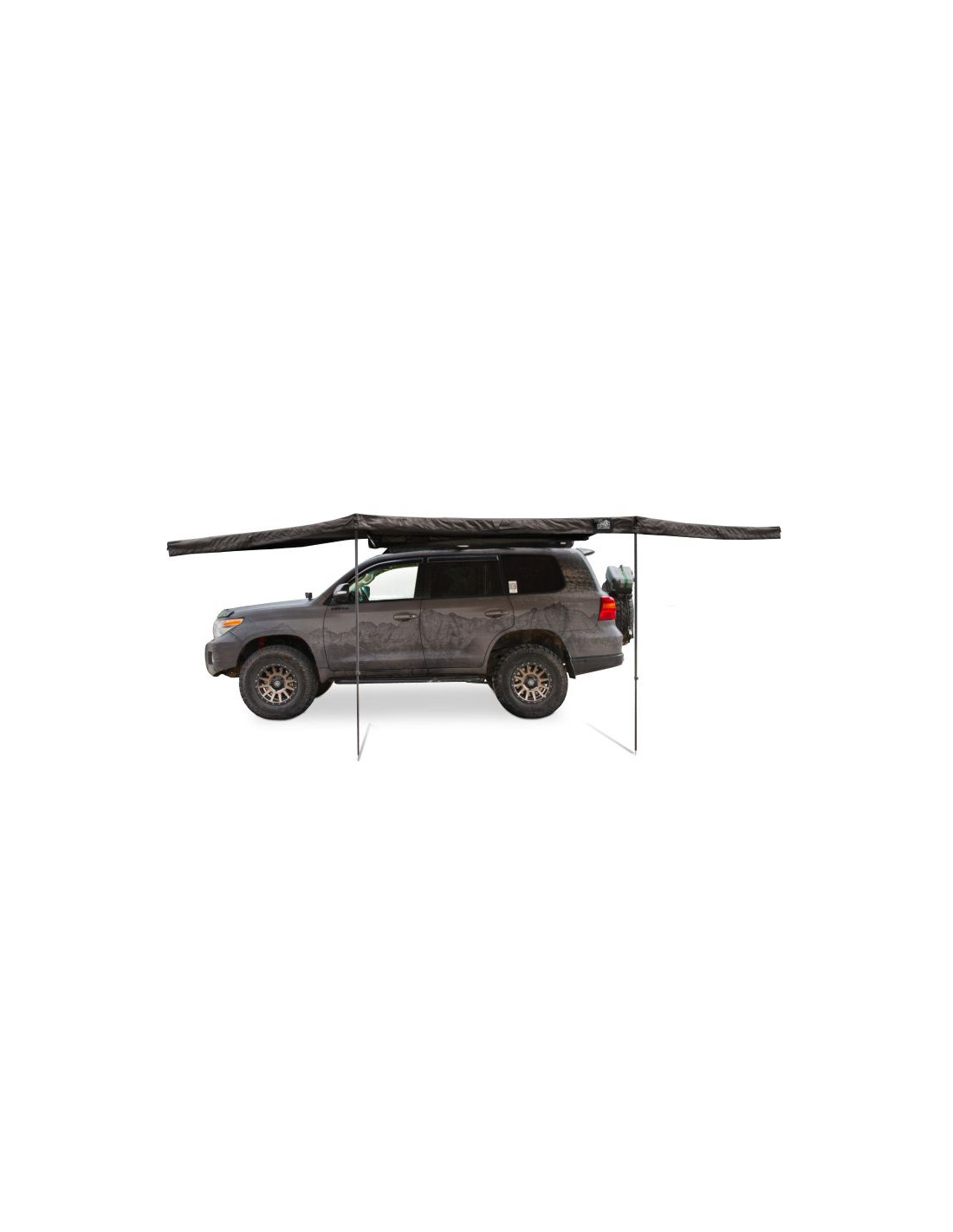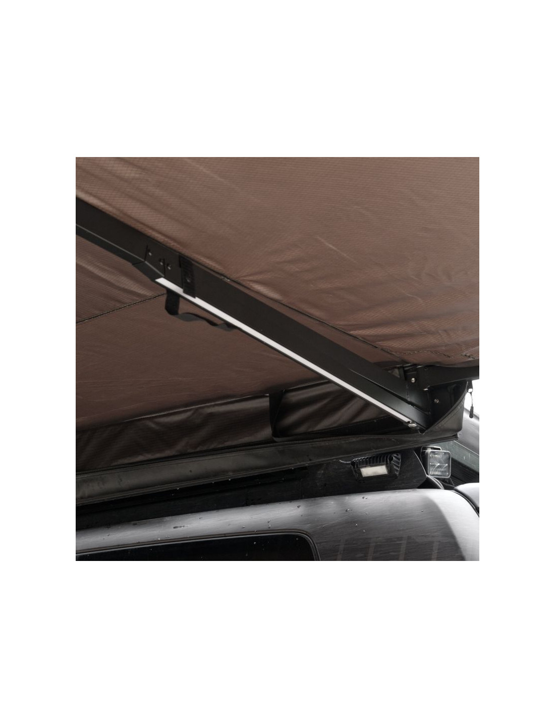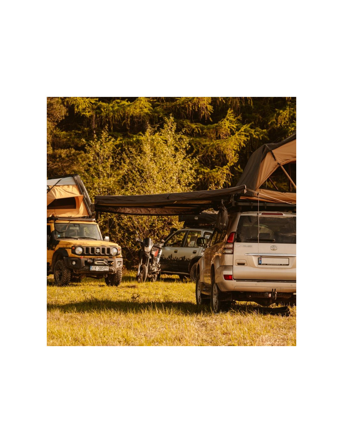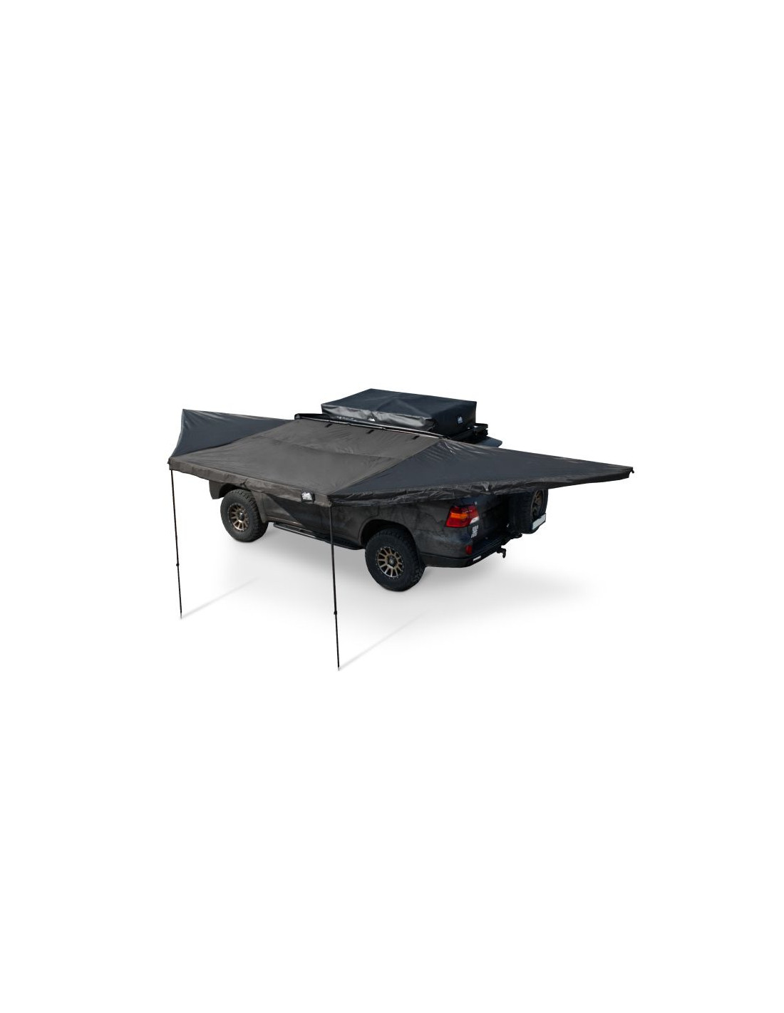 - Zadaszenie rozciąga się wokół samochodu aż na 180°, tworząc dużą, zacienioną przestrzeń, gdzie spokojnie odpoczniesz w upalne dni.