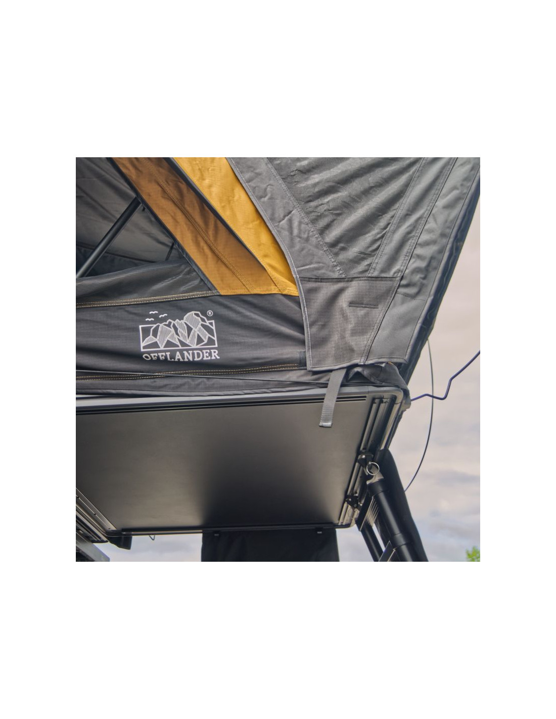 Namiot dachowy FOLD E 150 marki OFFLANDER to kompaktowe, a zarazem niezwykle solidne rozwiązanie dla dwóch osób (maksymalnie trzech), lub rodziny 2+1. To model, który łączy w sobie szybkie rozkładanie, trwałość i najwyższy komfort podróżowania. Dzięki nowoczesnym tkaninom z powłoką blackout oraz wyjątkowo wysokiej wodoodporności aż PU 5000 mm, FOLD E 150 poradzi sobie w najbardziej wymagających warunkach pogodowych.