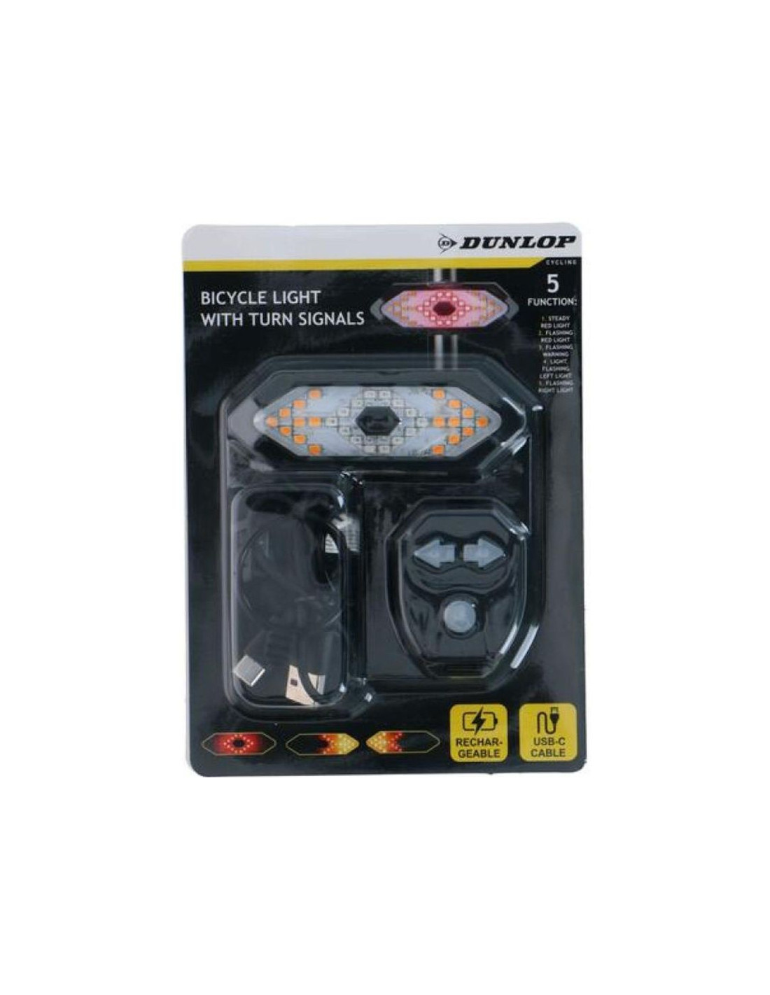 Lampka rowerowa Dunlop oferuje pięć funkcji świecenia, w tym kierunkowskaz, który zwiększa bezpieczeństwo podczas manewrów na drodze. Dzięki różnym trybom, takim jak stałe, migające czy pulsujące światło, rowerzysta ma możliwość dopasowania intensywności świecenia do warunków jazdy. Wbudowany kierunkowskaz LED ułatwia sygnalizowanie zmiany kierunku, co poprawia widoczność i komunikację z innymi uczestnikami ruchu.