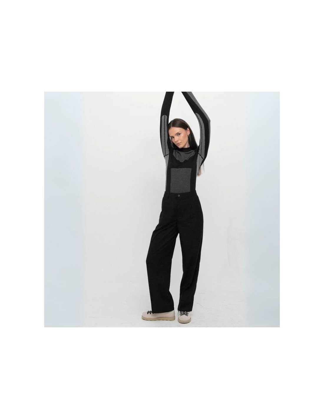 - Płaskie szwy minimalizują powstawanie otarć. Dekolt wykończono prążkowaną stójką, a rękawy i dół elastyczną gumką.