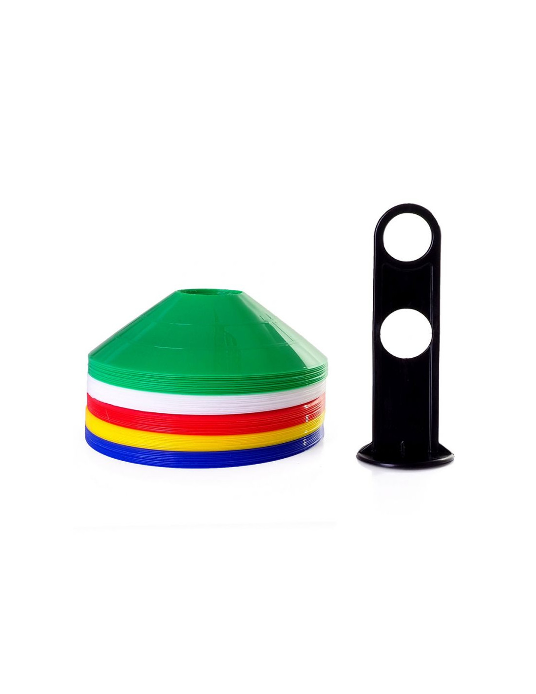 - 50szt Talerze treningowe wykonane z tworzywa sztucznego, o solidnej podstawie przeznaczone do różnego rodzaju treningów, ćwiczeń, gier i zabaw.