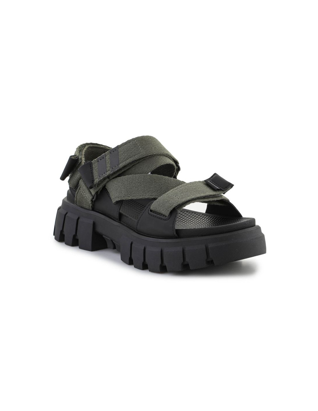 • Ten wyjątkowy design łączy charakterystyczną platformę inspirowaną modelem Revolt z otwartą cholewką, wykonaną z tekstylnych pasków z regulowanymi zapięciami na rzep.