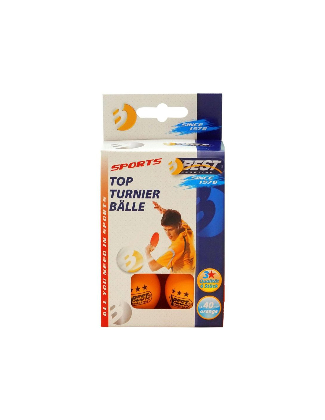 Piłeczki do tenisa stołowego best sporting tournament 3 gwiazdki 6szt pomarańczowe