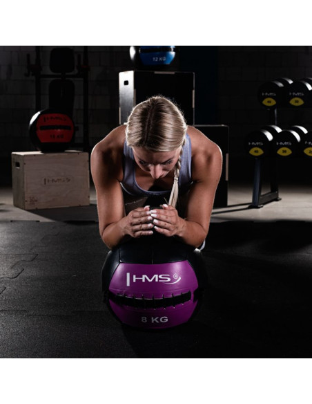 Wall Ball WLB HMS - to piłka wykorzystywana do ćwiczeń typu cross fit, jak również treningów ogólnorozwojowych. Ćwiczenia z piłkami WLB HMS angażuje niemal wszystkie mięśnie ciała, co stanowi idealną alternatywę dla klasycznych treningów zarówno rak, jak i nóg. Piłki z serii WLB HMS wykonane są w całości ze skóry syntetycznej, co wpływa na bezpieczeństwo i komfort podczas ćwiczeń. Dodatkowym atutem są duże gabaryty piłki - obwód 109 cm, dzięki czemu idalnie sprawdzają się podczas treningów siłowych oraz technicznych.