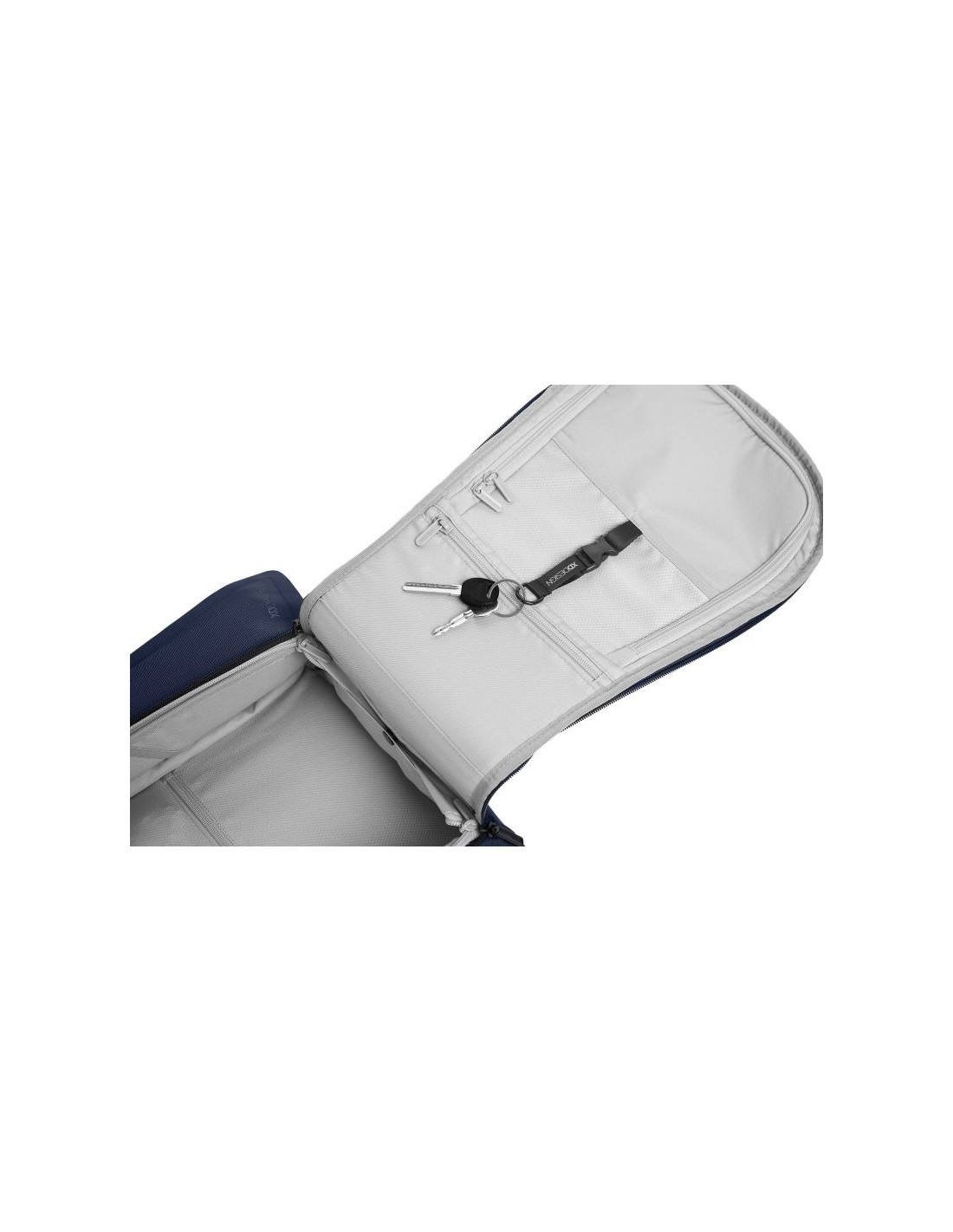 - Pojemna przednia komora na dodatkowe akcesoria z haczykiem na klucze