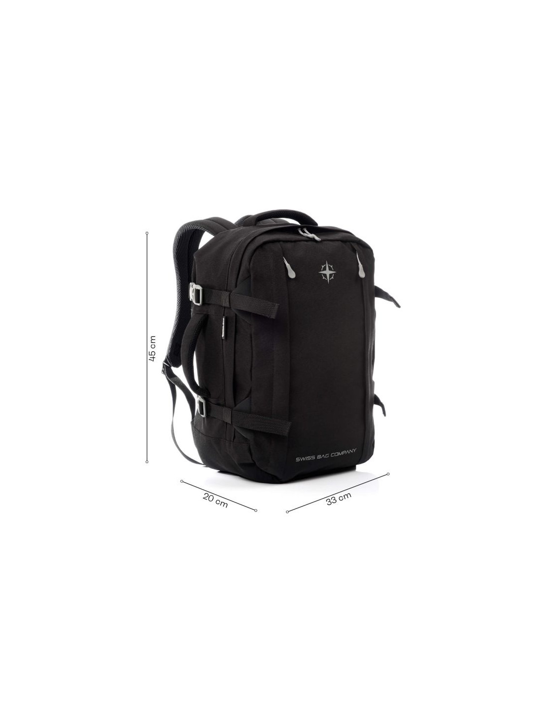 Plecak SwissBags Cointrin to niezawodny towarzysz każdej podróży, idealnie dopasowany do wymogów bagażu podręcznego większości linii lotniczych dzięki wymiarom 45x33x20 cm. Wykonany z wysokiej jakości poliestru, gwarantuje trwałość i odporność na uszkodzenia, a jego pojemność 35 litrów sprawia, że pomieści wszystkie niezbędne rzeczy.