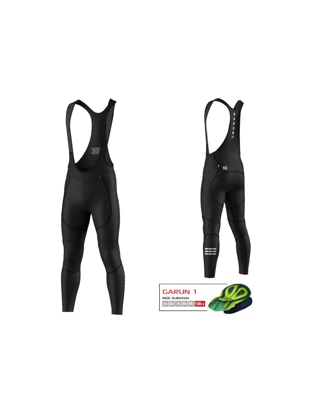 W porównaniu z zimowymi rajtuzami Gardeana poprawił się krój szelek, parametry techniczne są coraz większe. Zastosowaliśmy jeszcze bardziej miękki i oddychający szybkoschnący materiał zapewniający świeżość pleców podczas najbardziej intensywnych ćwiczeń lub wyścigów. Konstrukcja szelek zapewnia wsparcie i stabilność do wkładki Garun 1. Wykonane z polaru SuperRoubaix® z obróbką DWR, zaprojektowanego w sposób innowacyjny i techniczny, niezbędne dla tych, którzy muszą trenować w zimnych i mokrych warunkach. Ukształtowane anatomicznie rozcięcia na kolanach gwarantują idealne dopasowanie i maksymalny komfort.