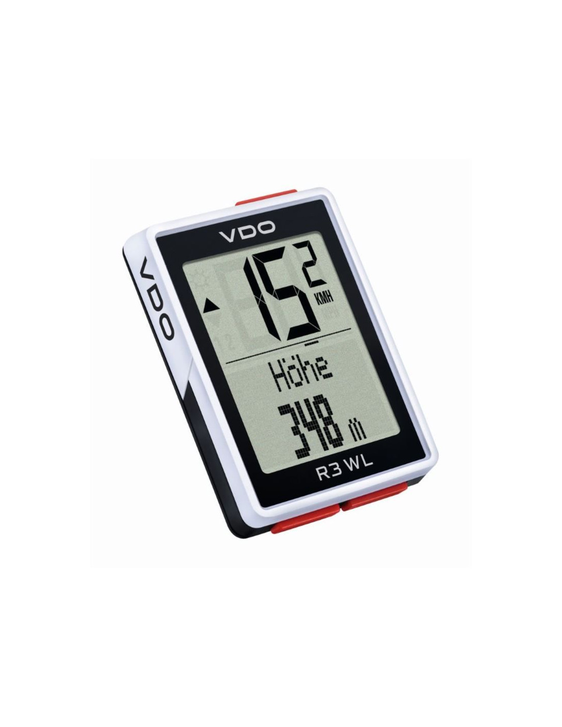 Bezprzewodowy komputer rowerowy z VDO R3 WL. To prawdziwy towarzysz na górskie wyprawy. Na wycieczce rowerowej w górach, rundzie treningowej lub podczas dojazdu do pracy w trudnym górzystym terenie masz na oku wszystkie ważne wartości a w szczególności te związane z podjazdami. Dzięki barometrycznemu czujnikowi wskazuje on aktualną wysokość nad poziomem morza, nachylenie trasy i przebyte przewyższenie pod górę, poza tym ten wodoodporny komputer rowerowy pokazuje dystans, prędkość, całkowity dystans, czas jazdy, całkowity czas jazdy, średnią prędkość, porównanie prędkości z prędkością średnią, maksymalną prędkość i temperaturę. A to wszystko dla dwóch różnych rowerów (np.: szosy i górala, z opcjonalnym uchwytem na drugi rower). Chcesz kontrolować swoją kadencję? Z VDO R3 WL jest to możliwe. Dokup czujnik kadencji w swoim sklepie rowerowym, połącz go z komputerem i w drogę. Na wyświetlaczu VDO R3 WL kontrolę nad swoimi danymi treningowymi masz nawet po zmierzchu dzięki zintegrowanemu podświetleniu wyświetlacza. VDO R3 WL poprowadzi dla ciebie również statystyki dla ostatnich 12 miesięcy w ten sposób możesz kontrolować najważniejsze wartości uzyskane w tym czasie i porównywać swoje osiągnięcia. Dzięki zdefiniowanym rozmiarom opon ustawienie komputera jest bardzo proste podobnie jak jego montaż na kierownicy lub mostku, który sprawnie przeprowadzisz używając dostępnych w zestawie opasek kablowych.Mimo stabilnego montażu, komputer rowerowy w prosty sposób, zdemontujesz z uchwytu i schowasz do kieszeni, a tym samym uchronisz go przed przed kradzieżą. Nadajnik radiowy przymocowany do widelca przesyła prędkość zmierzoną na kole do VDO R3 WL. Zintegrowana wymienna bateria guzikowa (CR 2450) jest wystarczająca do zasilania VDO R3 WL w energię do dwóch lat użytkowania.