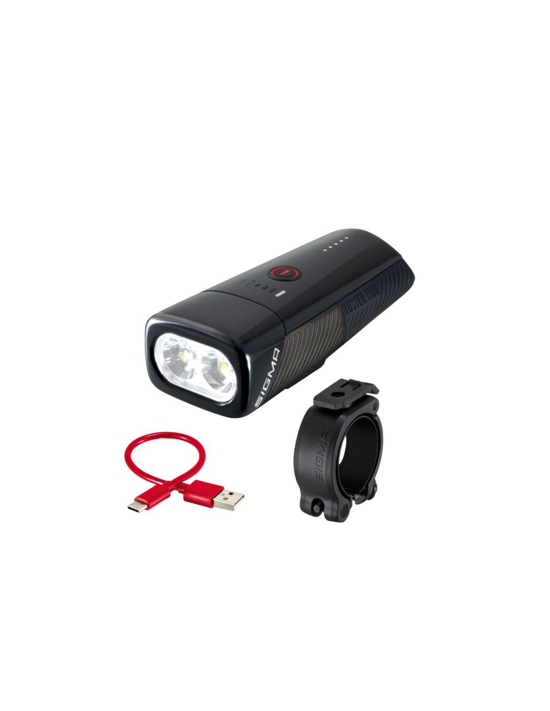 Lampkę BUSTER 1100 mocuje się na kierownicy za pomocą skręcanego uchwytu. W zależności od potrzeb lampkę można mocować poziomo i pionowo – również na wygiętej kierownicy. Dzięki „Quick Release” lampkę można szybko zdemontować i schować, oszczędzając miejsce na kierownicy. Za pomocą zintegrowanych prowadnic lampkę BUSTER 1100 można łatwo wyjąć z uchwytu, a następnie ponownie zamocować. Uchwyt rowerowy SIGMA pasuje do kierownic o średnicy 22-35 mm.