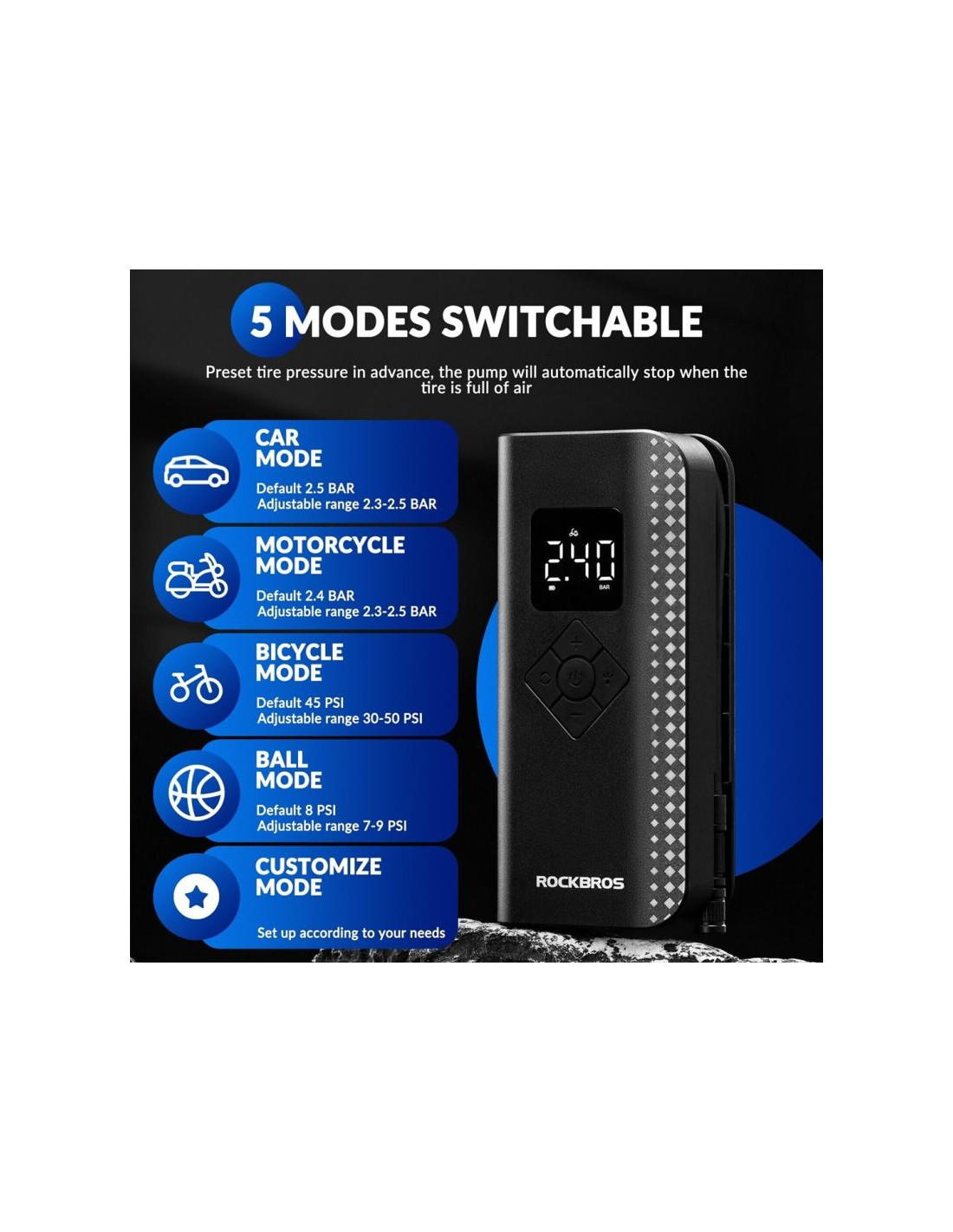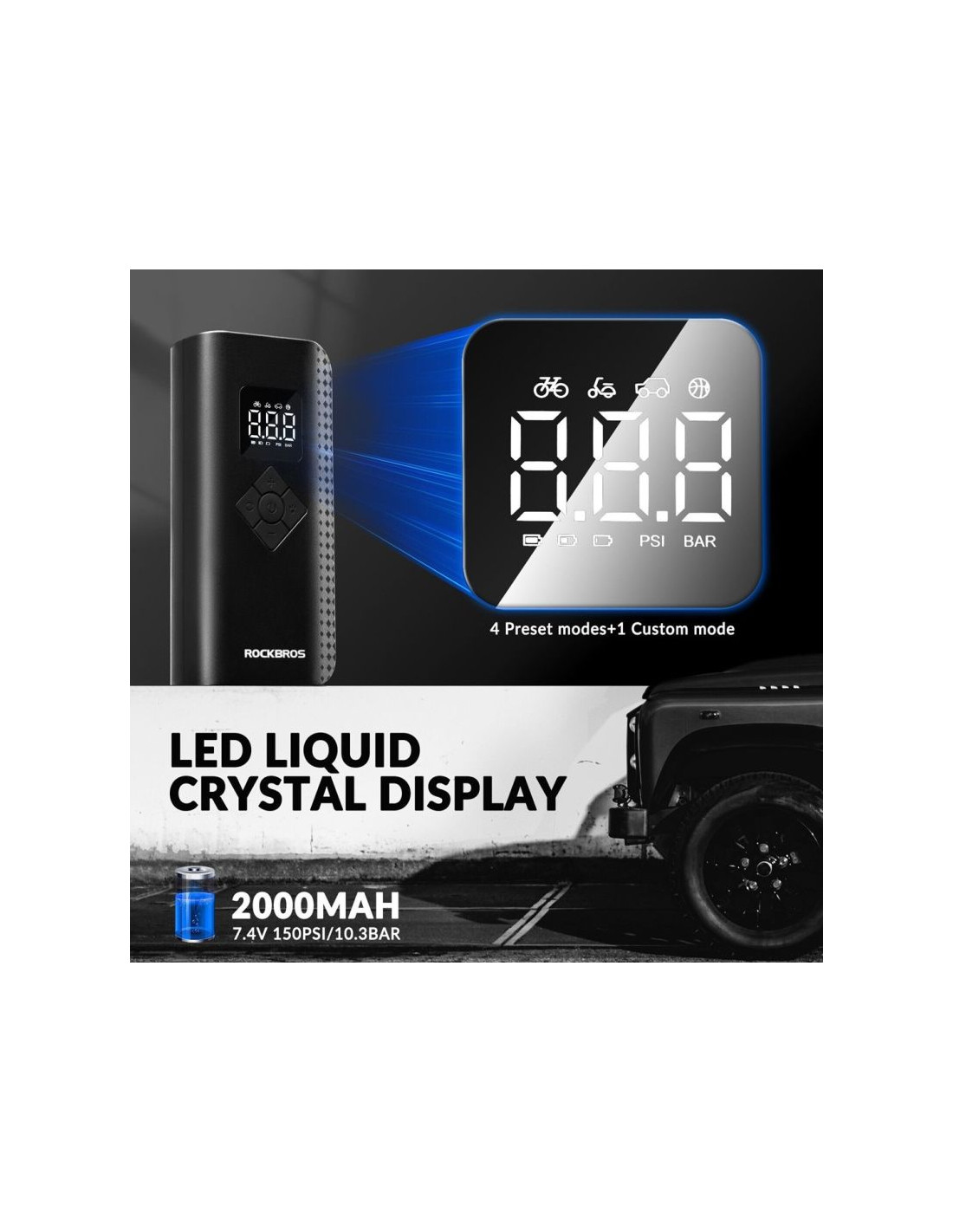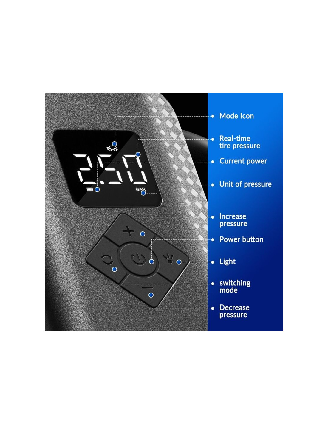 Inteligentne ładowanie i zatrzymywanie/ustawiane ciśnienie w oponach/oświetlenie LED.