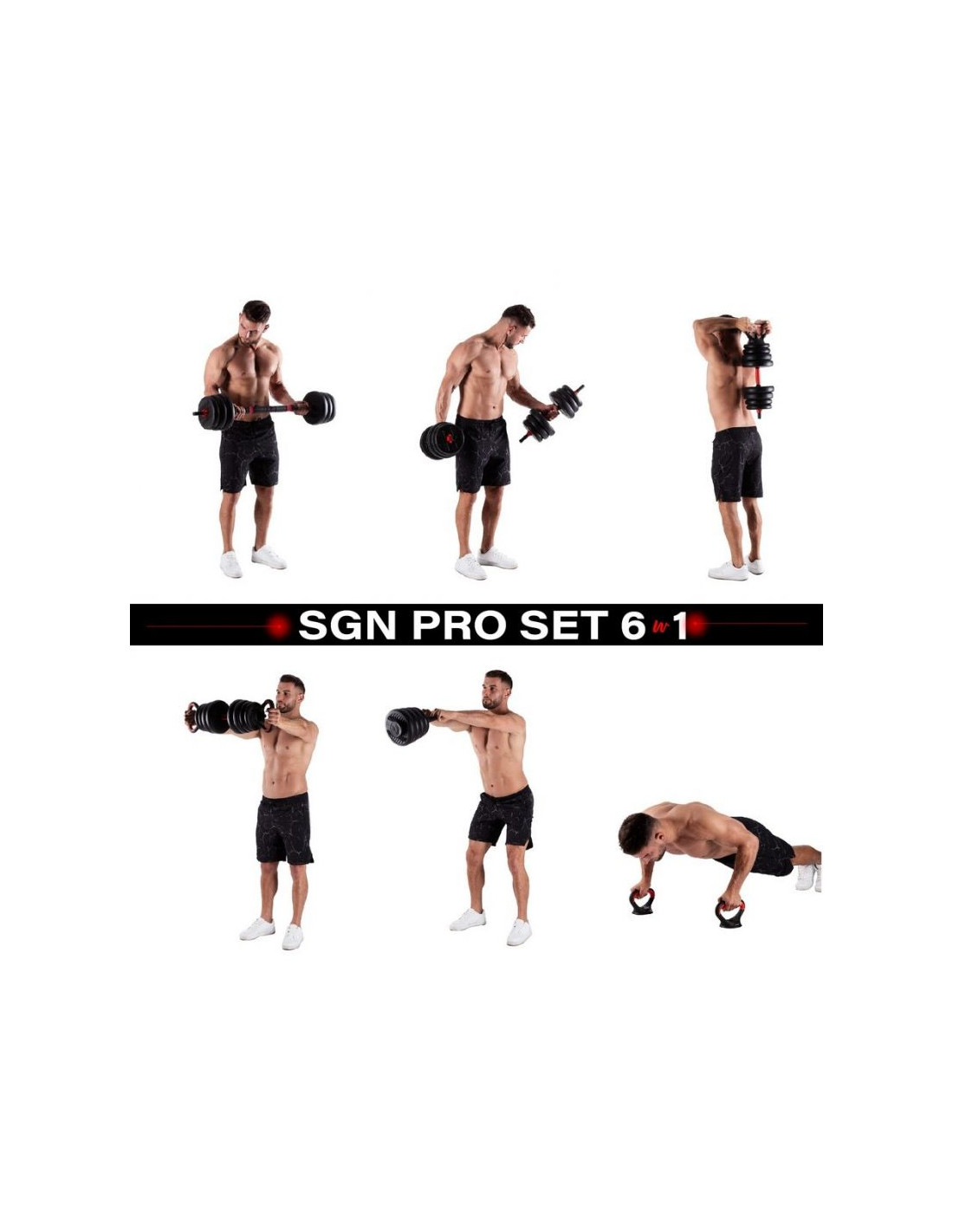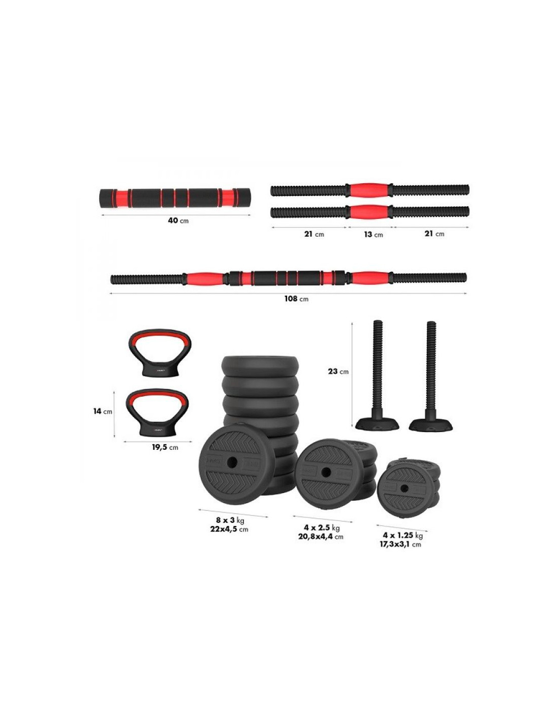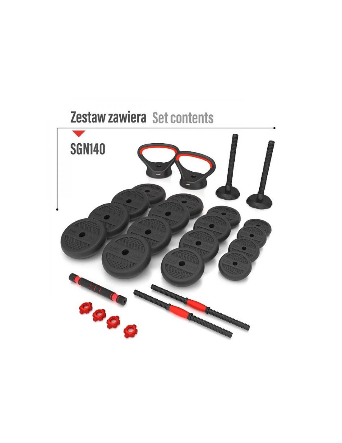 Zestaw ciężarów 6w1 hms sgn140 (sztanga, sztangielki i kettlebell) 40kg