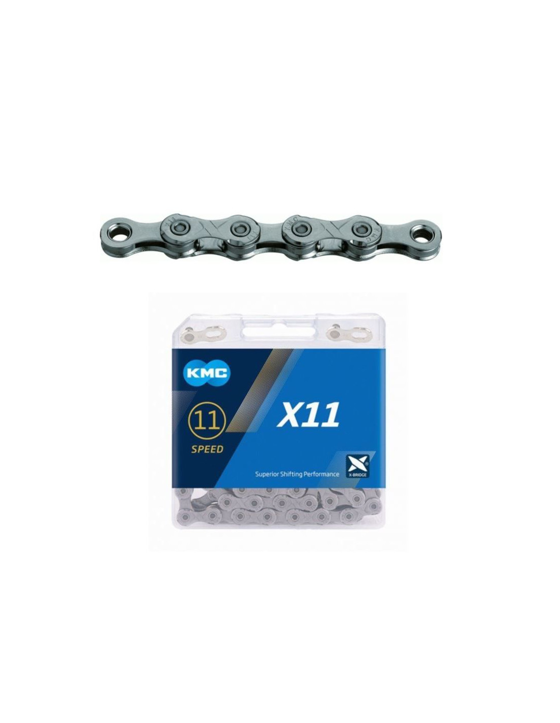 Podstawowy łańcuch do systemu 11-rzędowego zapakowany w pudełko. Wykonany przy wykorzystaniu nowoczesnych technologii i nowych rozwiązań konstrukcyjnych płytek i pinów.