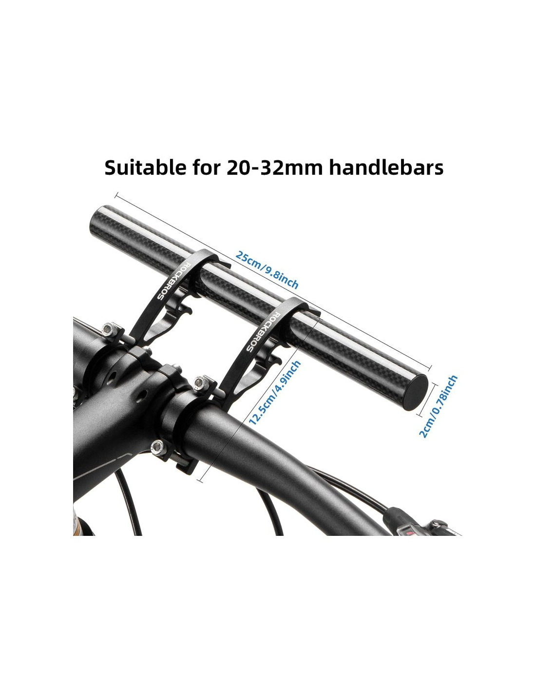 Podwójny klips do mocowania na stałe: Przedłużenie kierownicy można zamontować na kierownicy o średnicy od 20 do 32 mm. Każdy uchwyt ma trzy śruby i stałe podwójne zaciski dla bezpieczniejszej jazdy.