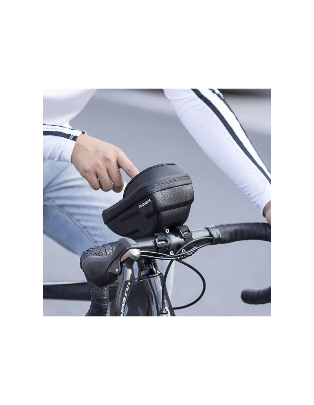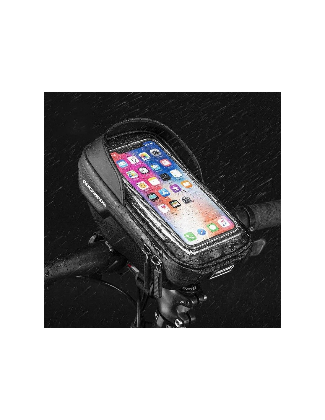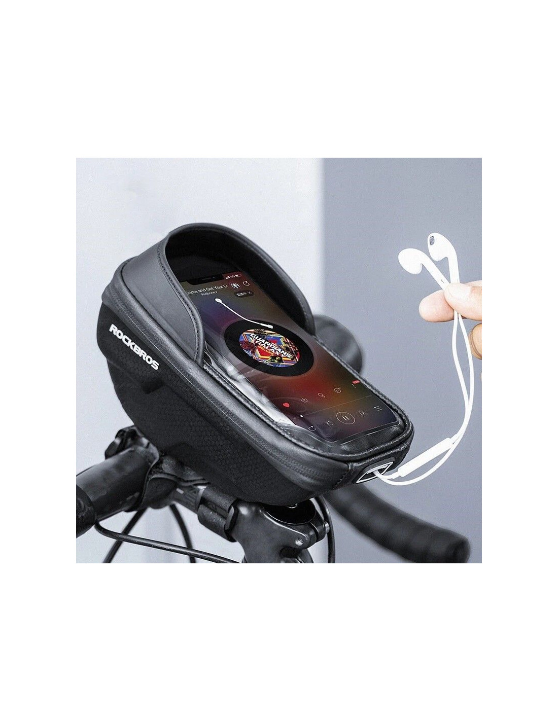 Sakwa na telefon marki Rockbros, montowana na kierownicę.