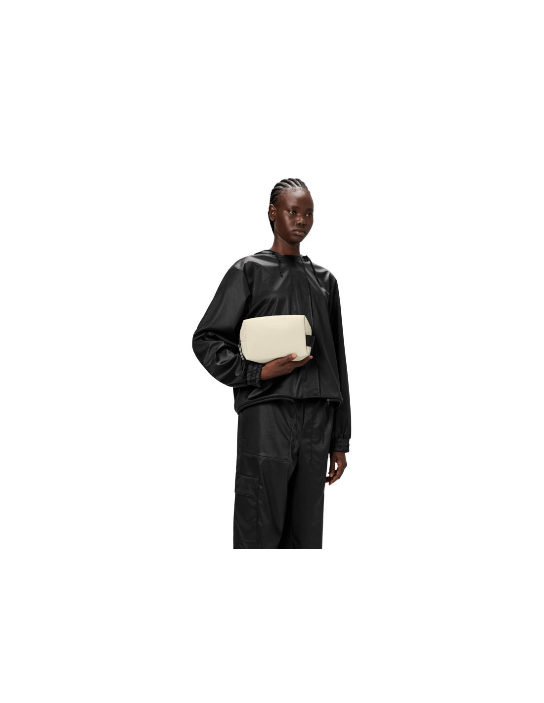 Wash Bag Small wykonana jest z charakterystycznego dla Rains wodoodpornego materiału poliuretanowego, który zapewnia wytrzymałość, trwałość i miękkość w dotyku.
