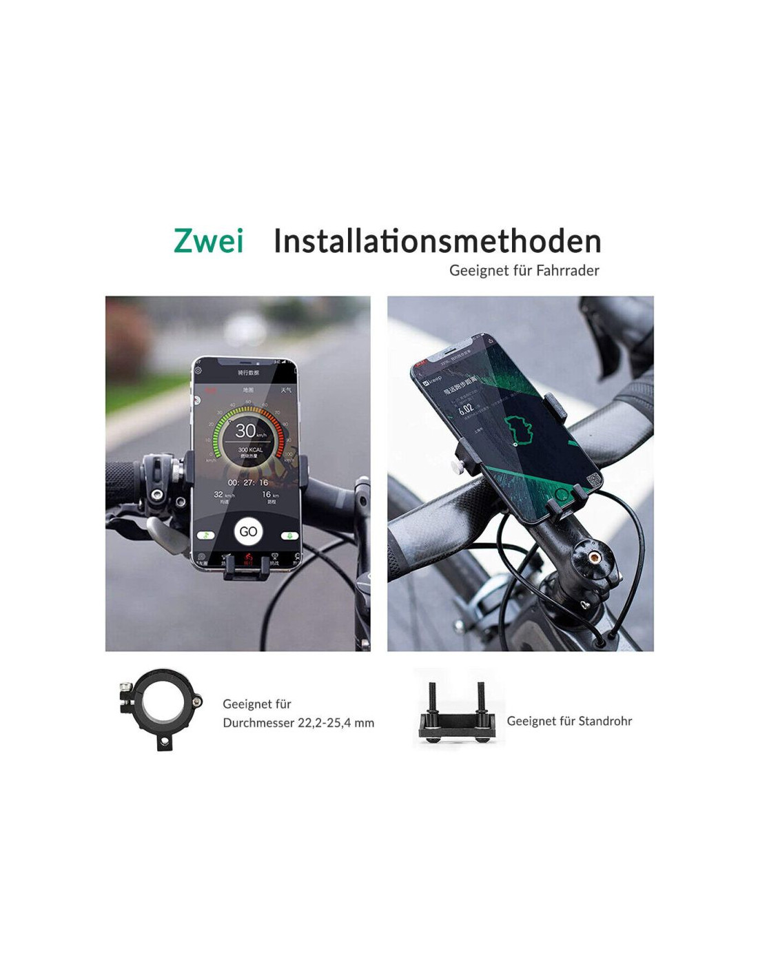 pasuje do kierownic rowerowych lub rowerowych, a dzięki przyssawce także do samochodu
