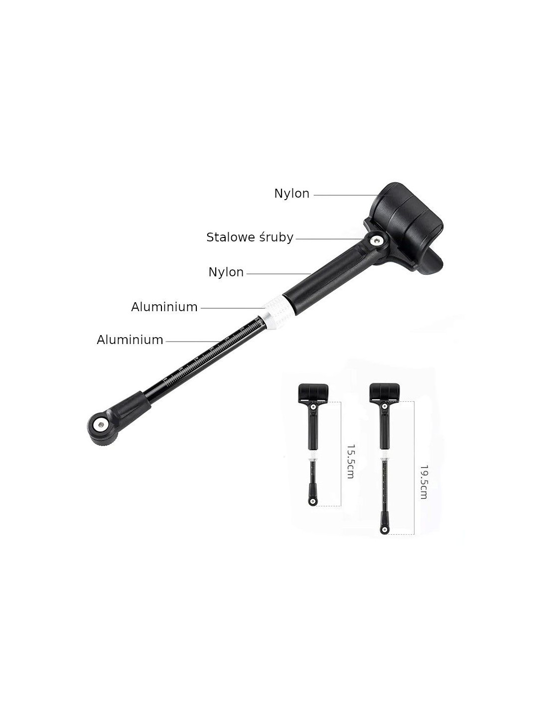 Konstrukcja z dwoma regulowanymi słupkami sprawia, że błotnik jest bardzo stabilny podczas jazdy. Dodatkowo dzięki tej konstrukcji możemy w bardzo łatwy sposób ustawić błotnik w odpowiednim dla nas kącie nachylenia lub odległości. Długość wspornika błotnika rowerowego umożliwia regulację w zakresie 15,5-19,5 cm.