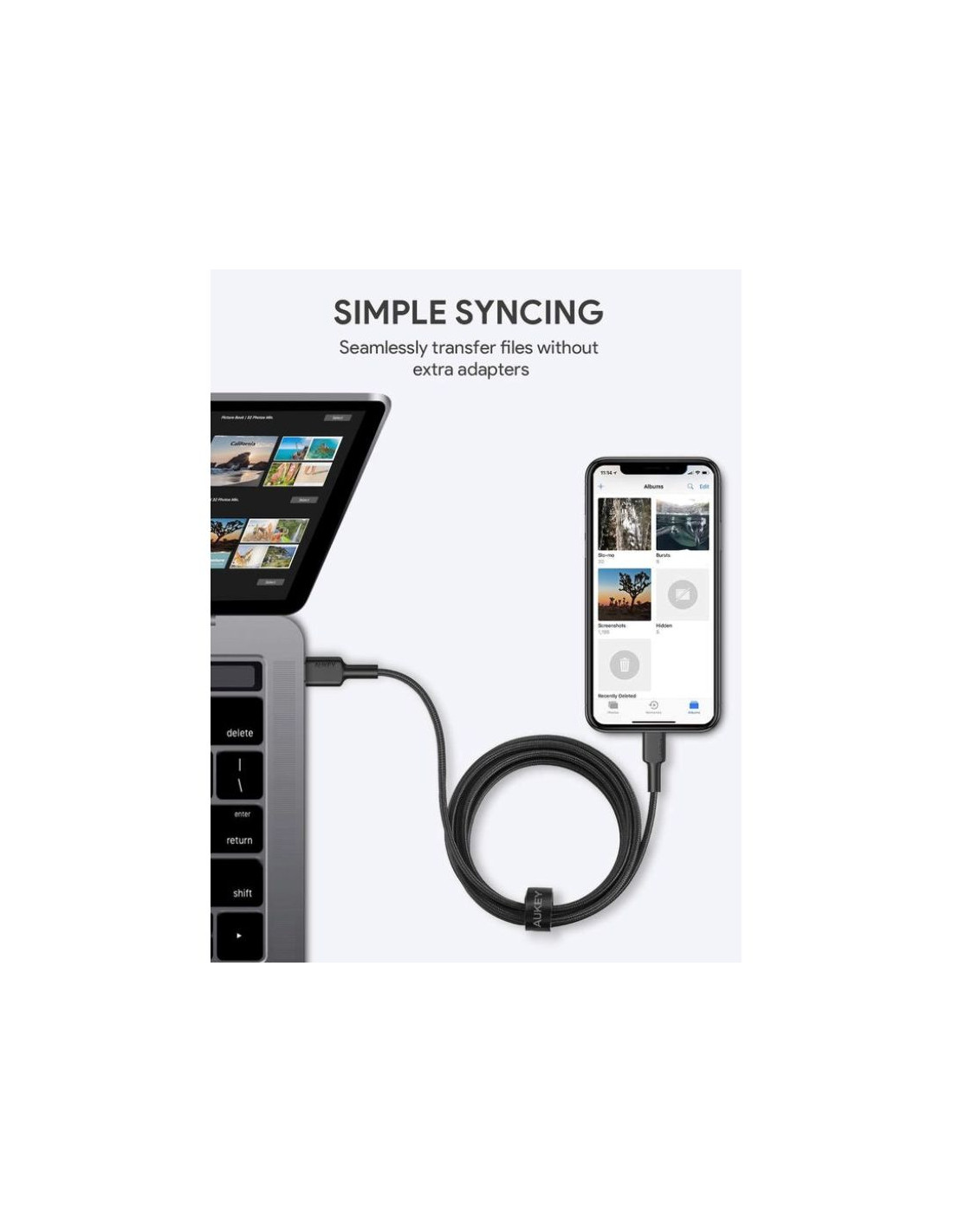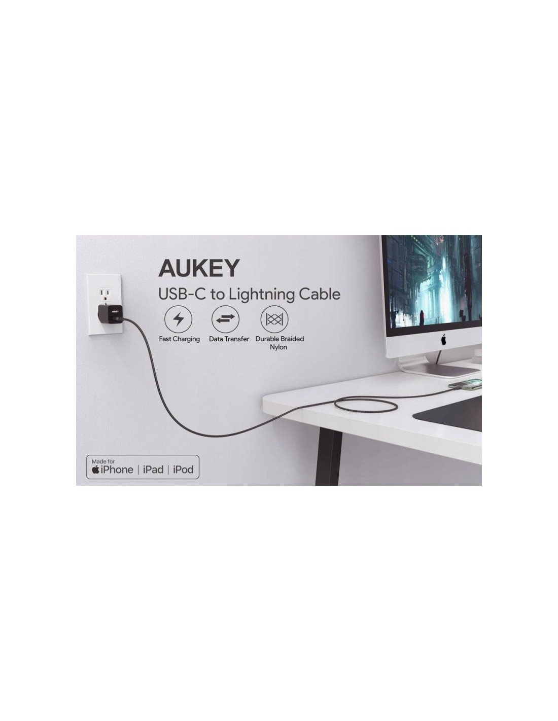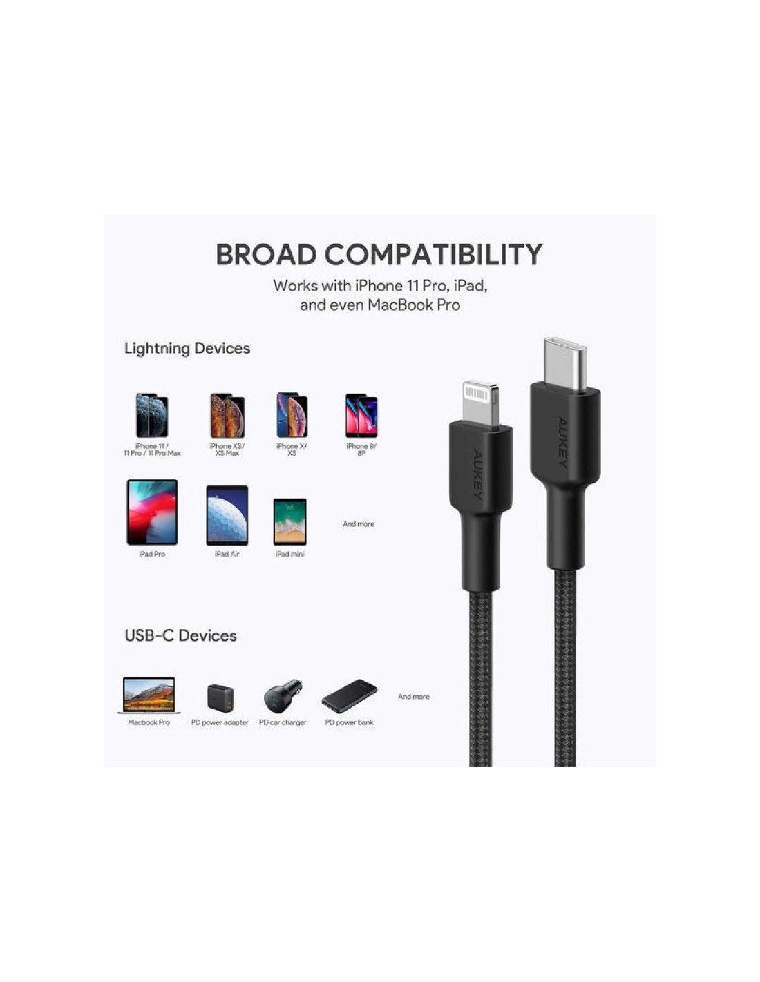Aukey cb-cl03 nylonowy kabel usb c-lightning 2m pd