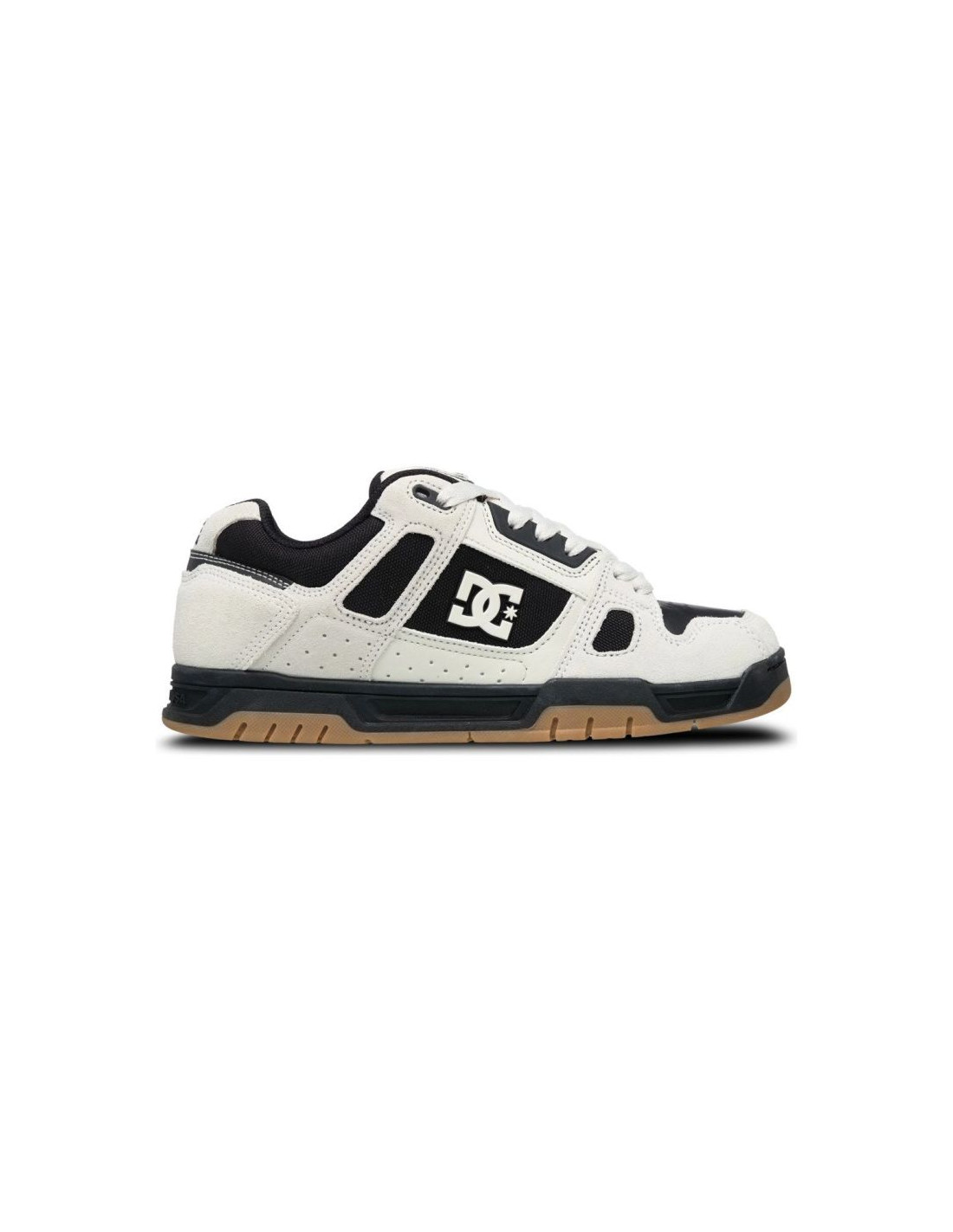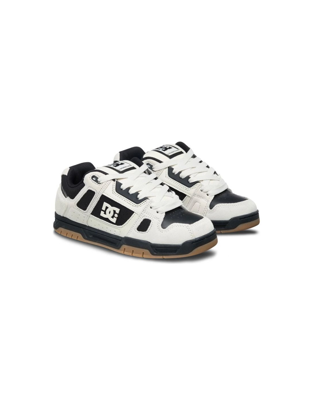 Model DC Shoes Stag DC01813114 White to klasyczne męskie sneakersy inspirowane kulturą skateboardingu, łączące trwałość, komfort i ponadczasowy styl streetwear. Cholewka łączy materiały takie jak skóra, nubuk i tekstylia, co zapewnia wytrzymałość przy codziennym użytkowaniu i modny wygląd w uniwersalnym, jasnym białym kolorze. Miękko wyściełany język i kołnierz gwarantują komfort nawet podczas intensywnego użytkowania, a tradycyjne sznurowanie daje pewne dopasowanie do stopy.