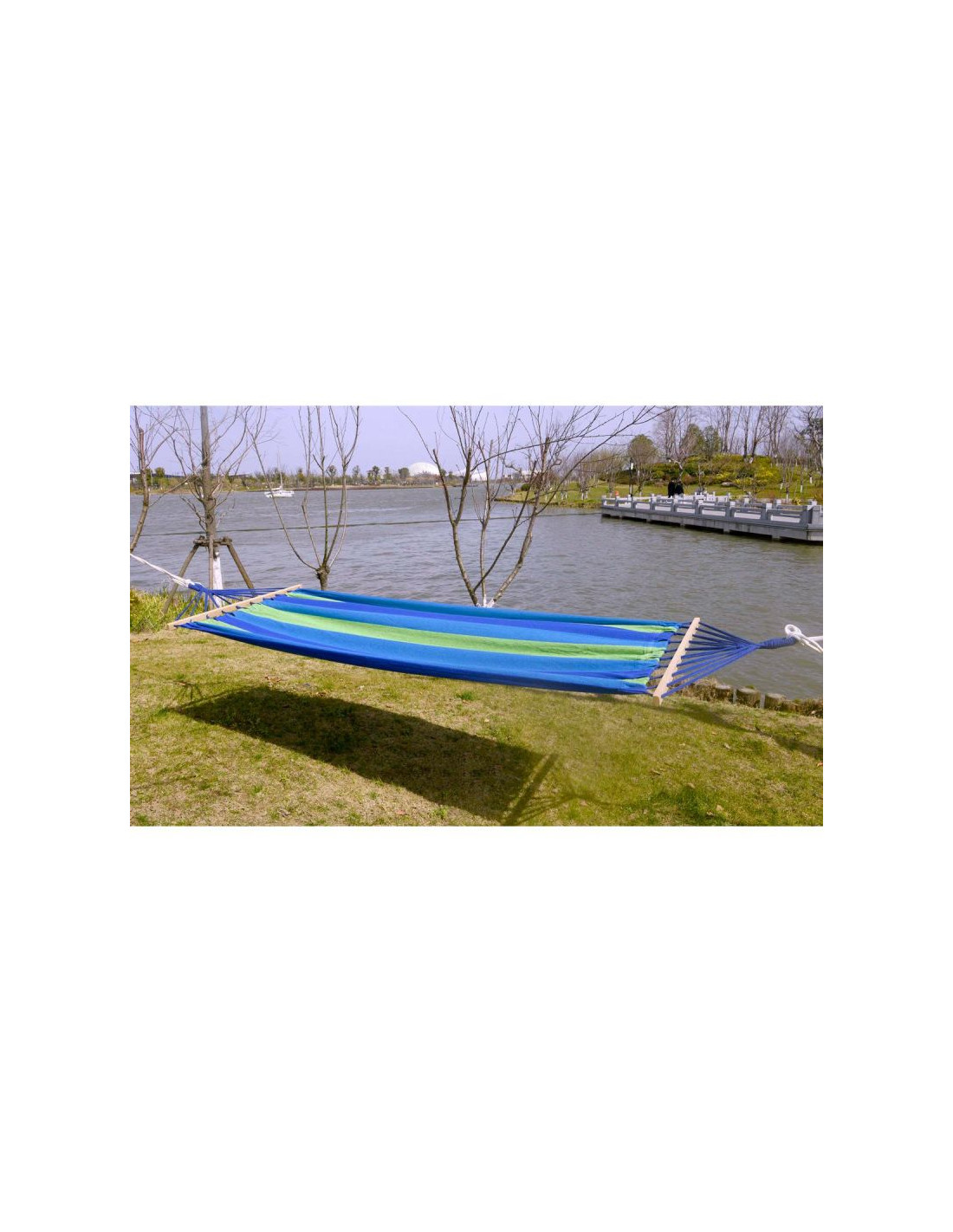 Drewniane drążki po obu stronach hamaka, utrzymują materiał w równomiernym napięciu, co zapobiega jego zwijaniu się i zapewnia wygodne, płaskie podparcie dla ciała. Dzięki temu hamak nie kołysze się nadmiernie podczas wsiadania, wychodzenia czy zmiany pozycji, co zwiększa bezpieczeństwo i komfort użytkowania. Idealny dla osób, które cenią sobie stabilność podczas odpoczynku na świeżym powietrzu.