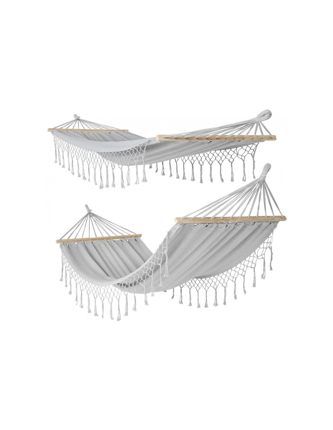 Hamak ogrodowy 2 osobowy 200x150cm z drążkiem i z frędzlami miami szary