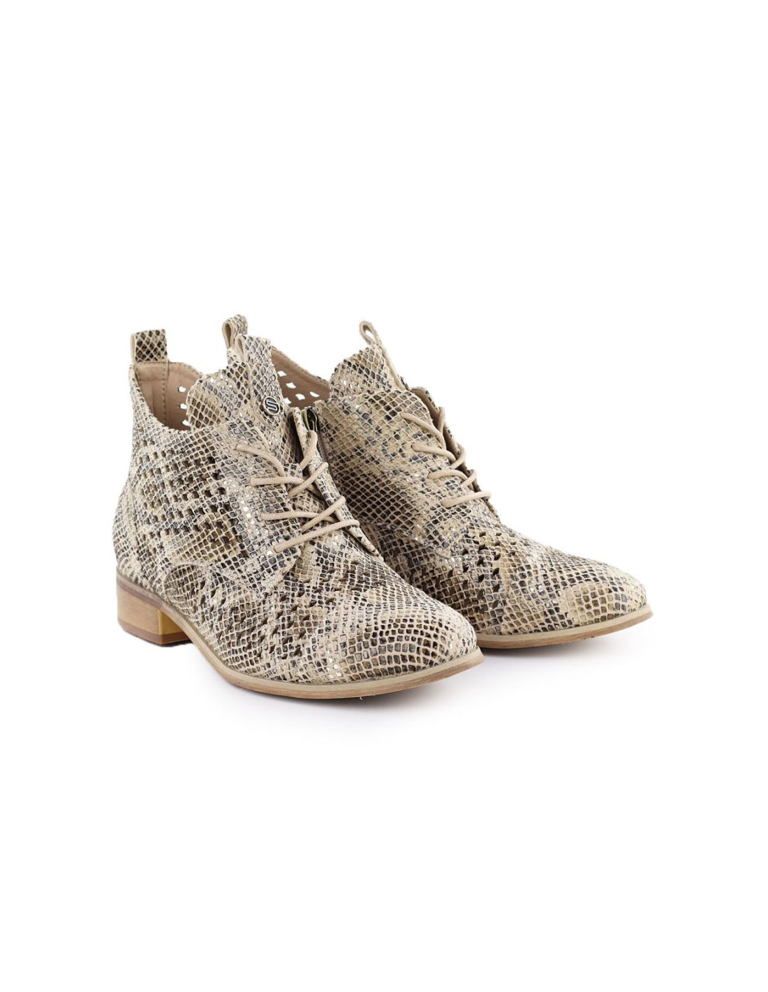 Botki damskie ażurowe wężowe beżowe potocki sz12091