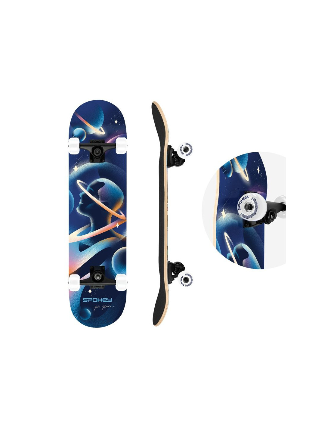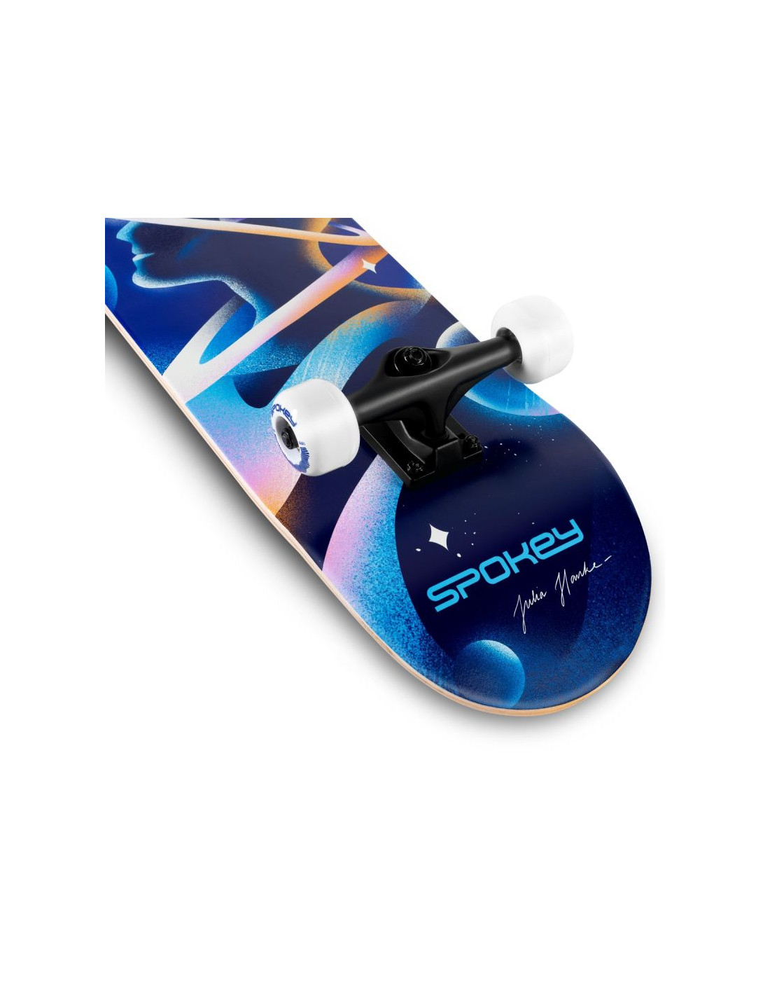 Klasyczna deskorolka przeznaczona do jazdy rekreacyjnej na utwardzonych nawierzchniach. Wykonana z 9-warstwowego klonu chińskiego, który jest elastyczny i bardzo wytrzymały. Zastosowane łożyska ABEC-3 i kauczukowe kółka o twardości 92A gwarantują dobrą prędkość i przyczepność. Wyjątkowa, autorska grafika projektu Adeli Madej, wyróżnia tę deskorolkę spośród wielu innych w tej kategorii. To doskonały wybór do skateparku oraz dynamicznej jazdy freestyle. Parametry: Materiał decku: 9-warstwowy klon chiński Rozmiar decku: 78,7 x 20 cm Kształt decku: double kick Pokrycie decku: black grip tape Truck: 5" seagull aluminum Kółka: 92A PU, 52 x 36 mm Łożyska: ABEC-3 Maksymalna waga użytkownika: 100 kg Zgodność z normą: EN - 13613 Polecany do: jazda rekreacyjna Poziom zaawansowania: początkujący, średniozaawansowany Informacje dotyczące bezpieczeństwa: Należy stosować środki ochrony indywidualnej. Nie nadaje się dla użytkowników o masie ciała większej niż 100 kg. Do stosowania pod nadzorem osoby dorosłej. Nie używać w ruchu ulicznym.