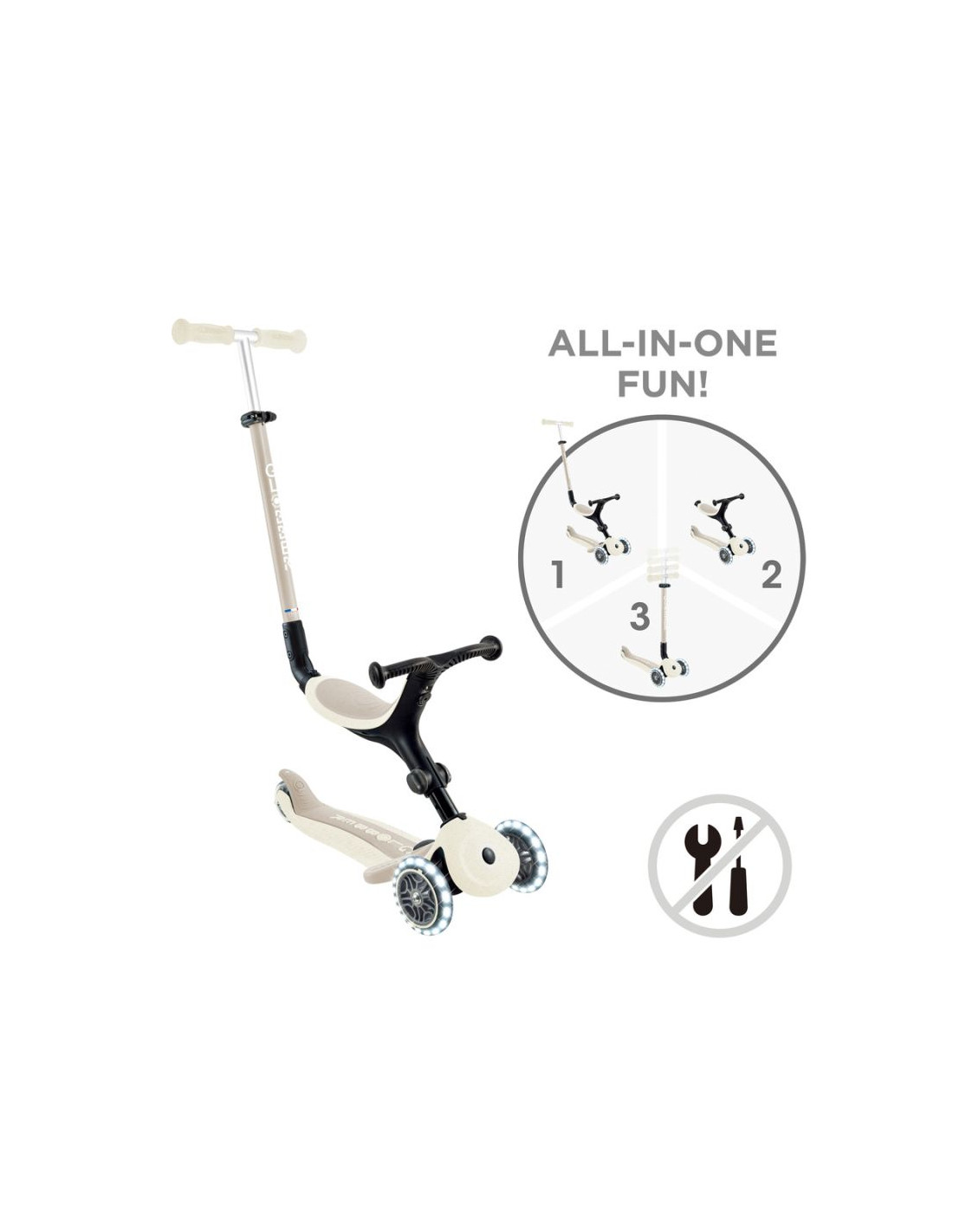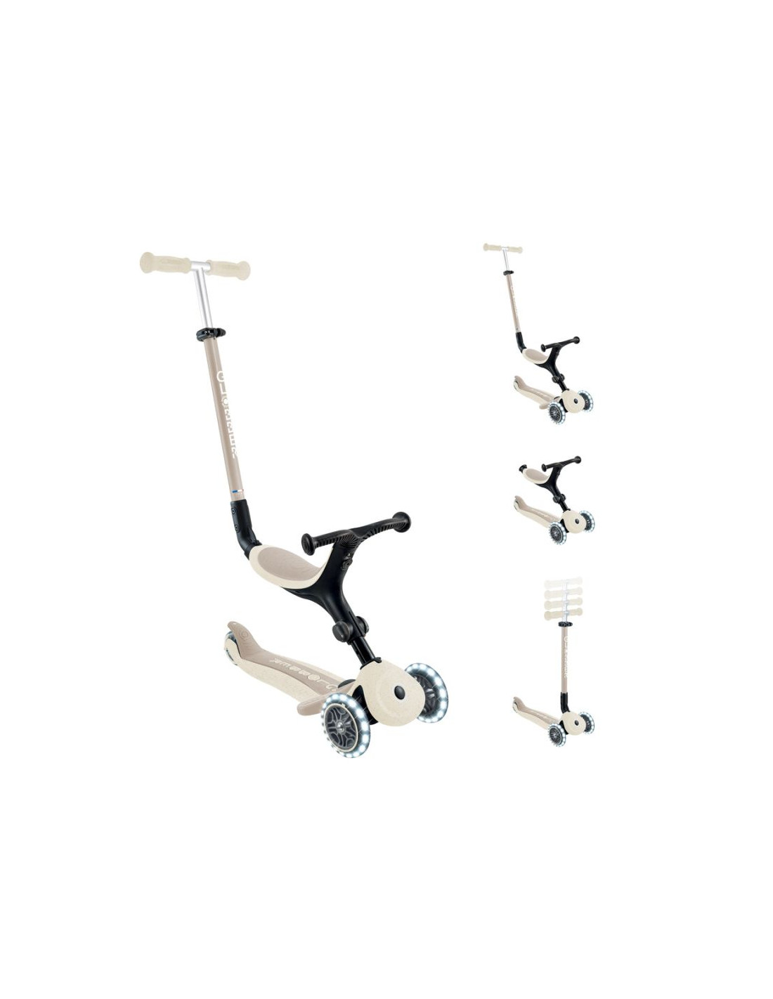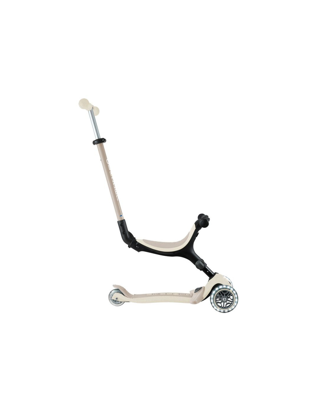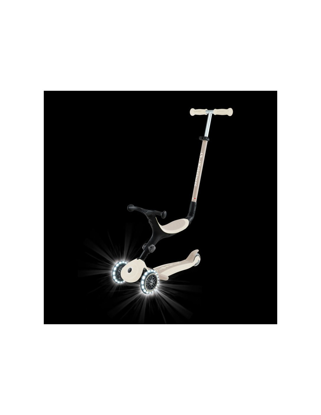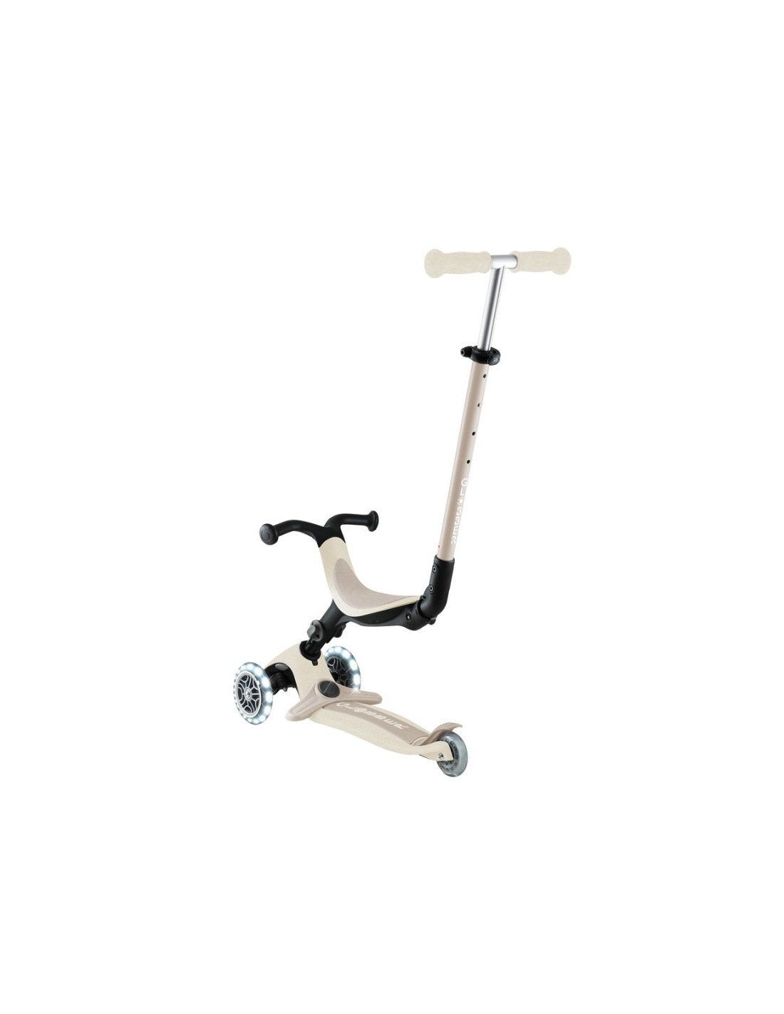 To 3-kołowa, świecąca hulajnoga eko z siedziskiem, która rośnie z dzieckiem: działa jako jeździk (15–36 mies.), rowerek chodzony (15–36 mies.) oraz hulajnoga (3–9+ lat). Zachowuje wytrzymałość kultowego oryginału, a jednocześnie wykorzystuje więcej materiałów eko dla mniejszego śladu środowiskowego.