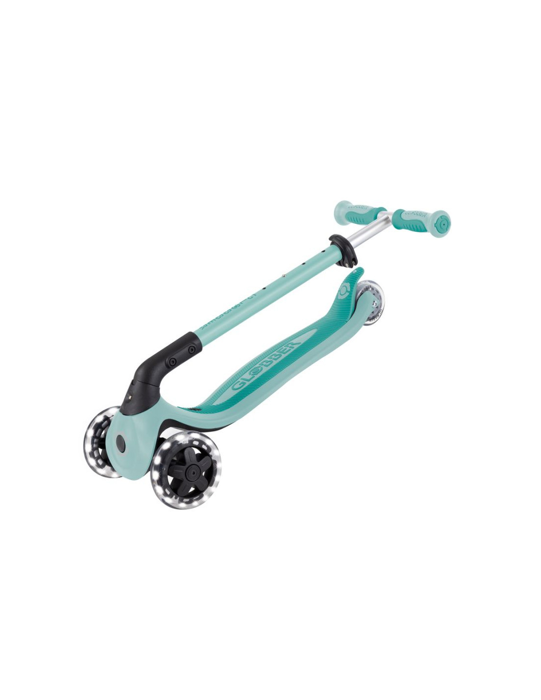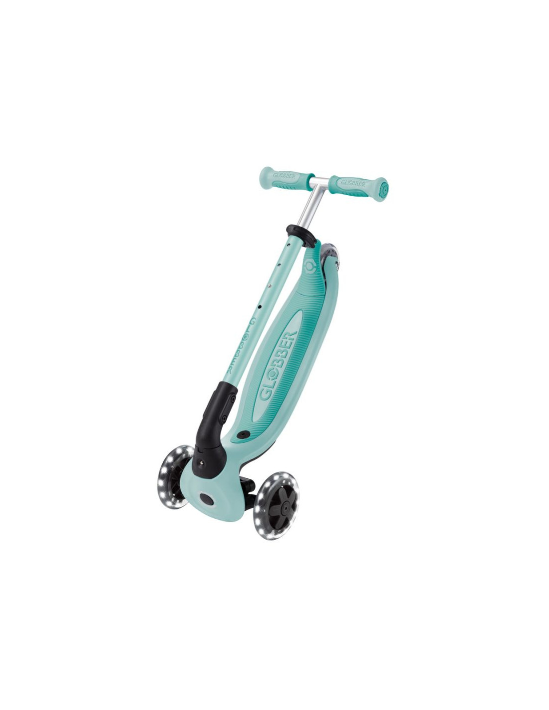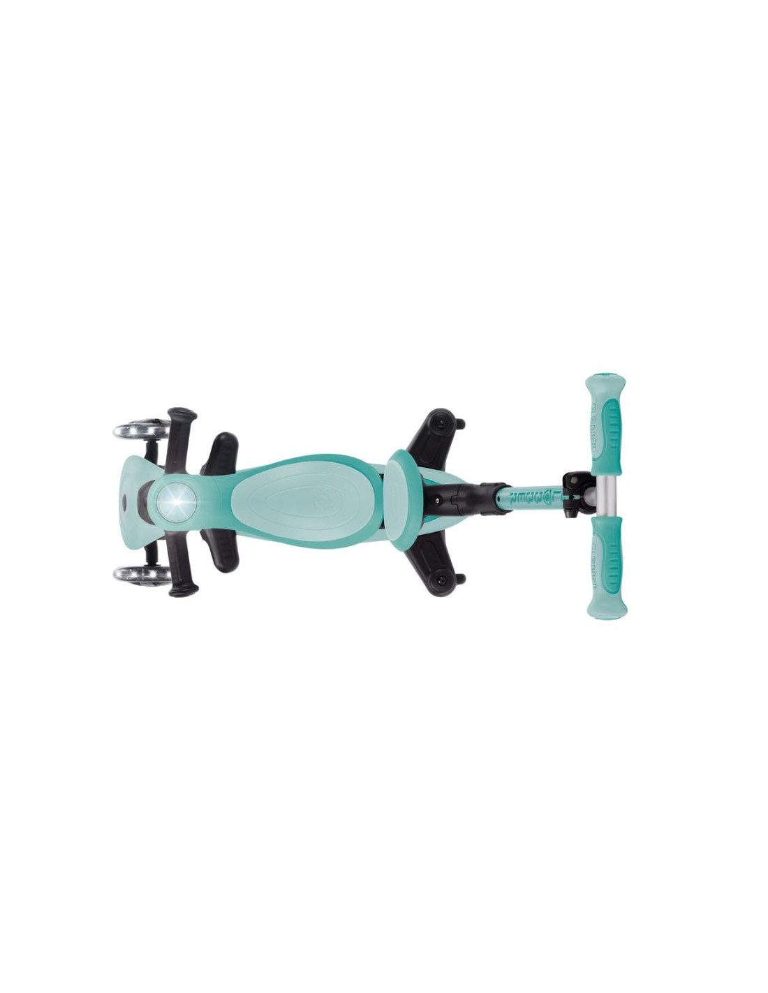 GO • UP Baby jest wyposażony w opatentowany przez firmę Globber system blokowania kierownicy, który blokuje przednie koła hulajnogi, aby poruszać się tylko do przodu i do tyłu, dzięki czemu dzieci zyskują pewność podczas jazdy na hulajnodze, jednocześnie ćwicząc umiejętności utrzymywania równowagi.