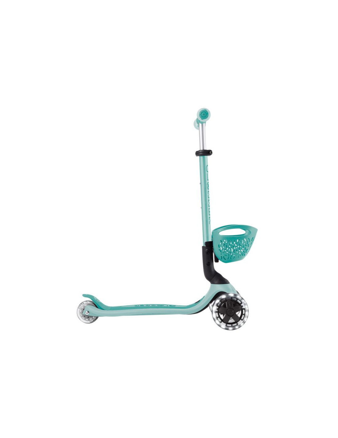 - Koszyczek z przodu pojazdu. Można używać zarówno w jeździku jak i w hulajnodze i odczepić, gdy nie jest potrzebny.