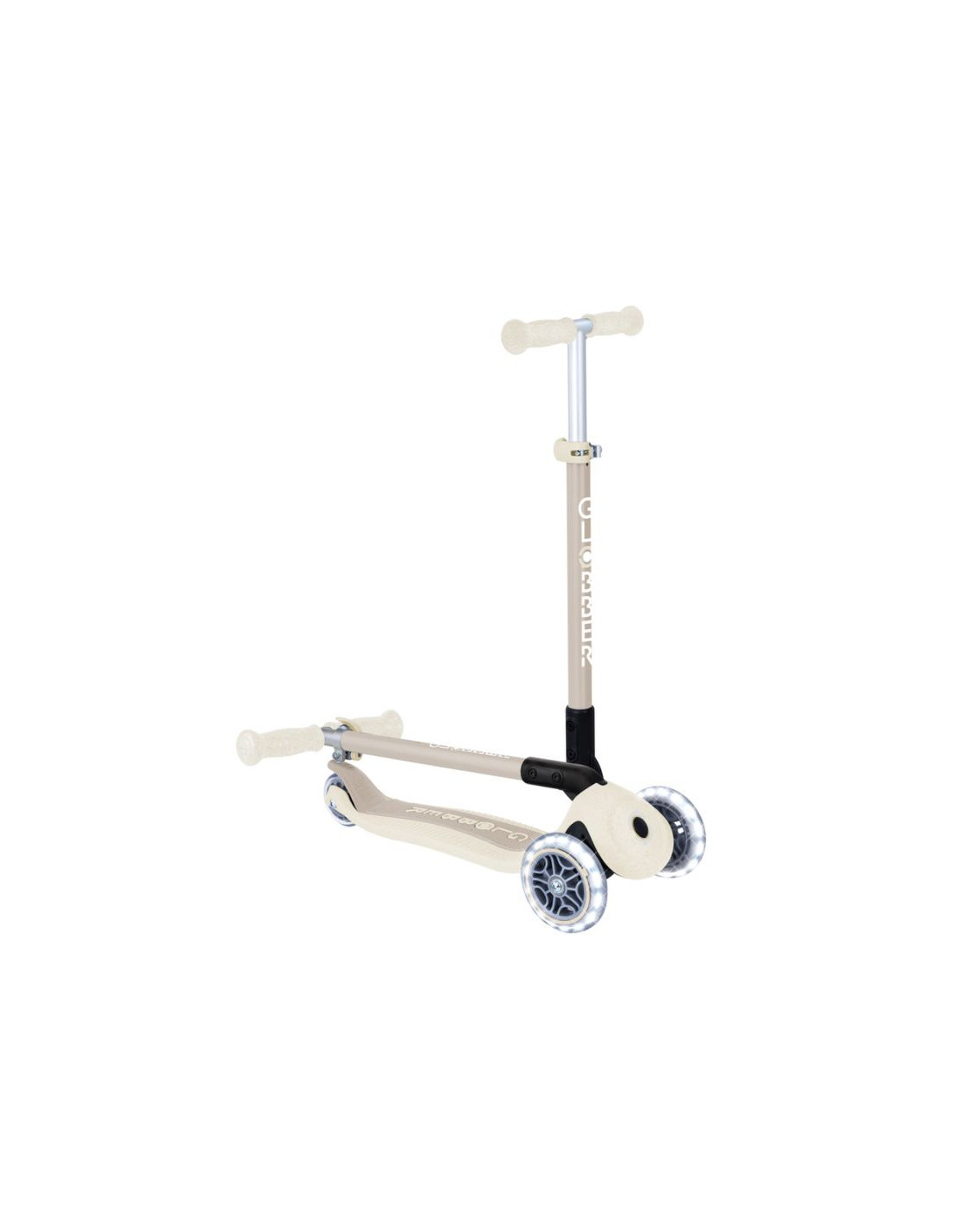 PRIMO FOLDABLE LIGHTS ECOLOGIC ma opatentowany system blokady kierownicy, dostępny wyłącznie w hulajnogach Globber.