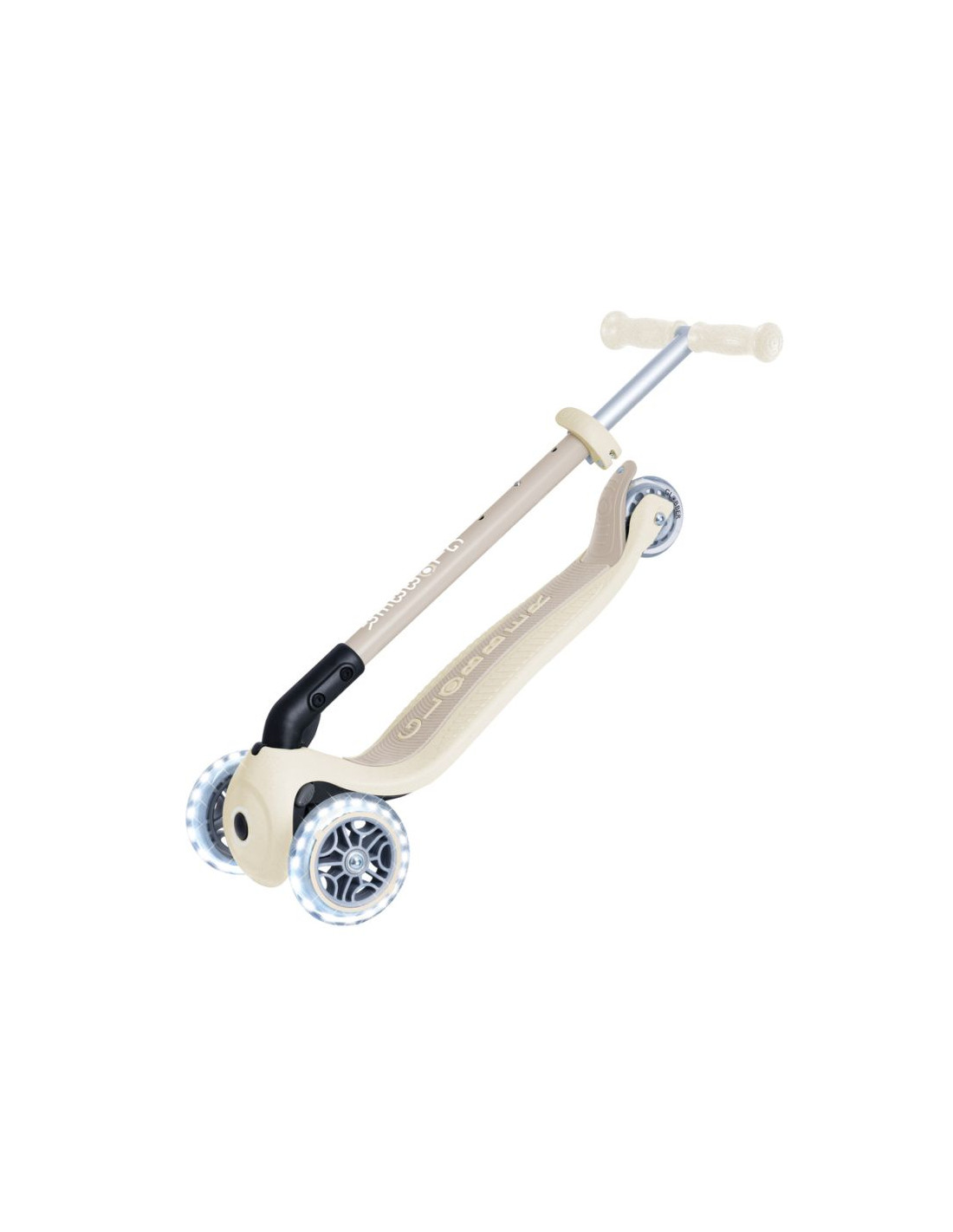 - 3-kołowa hulajnoga z opatentowanym przez Globber systemem składania z bezpiecznym przyciskiem, który składa hulajnogę w tryb wózka. Wygodnie przenoś, tocz lub przechowuj po zabawie!