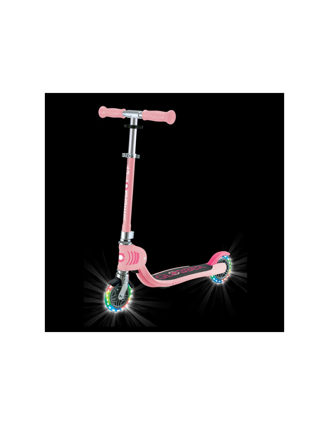 Dzięki zintegrowanemu systemowi składania Globber, solidnemu podestowi, skutecznemu hamulcowi, regulowanej kierownicy typu T oraz kołom LED bez baterii, FLOW FOLDABLE JUNIOR LIGHTS zapewnia bezpieczne, wygodne i efektowne przejażdżki dla rosnących dzieci.