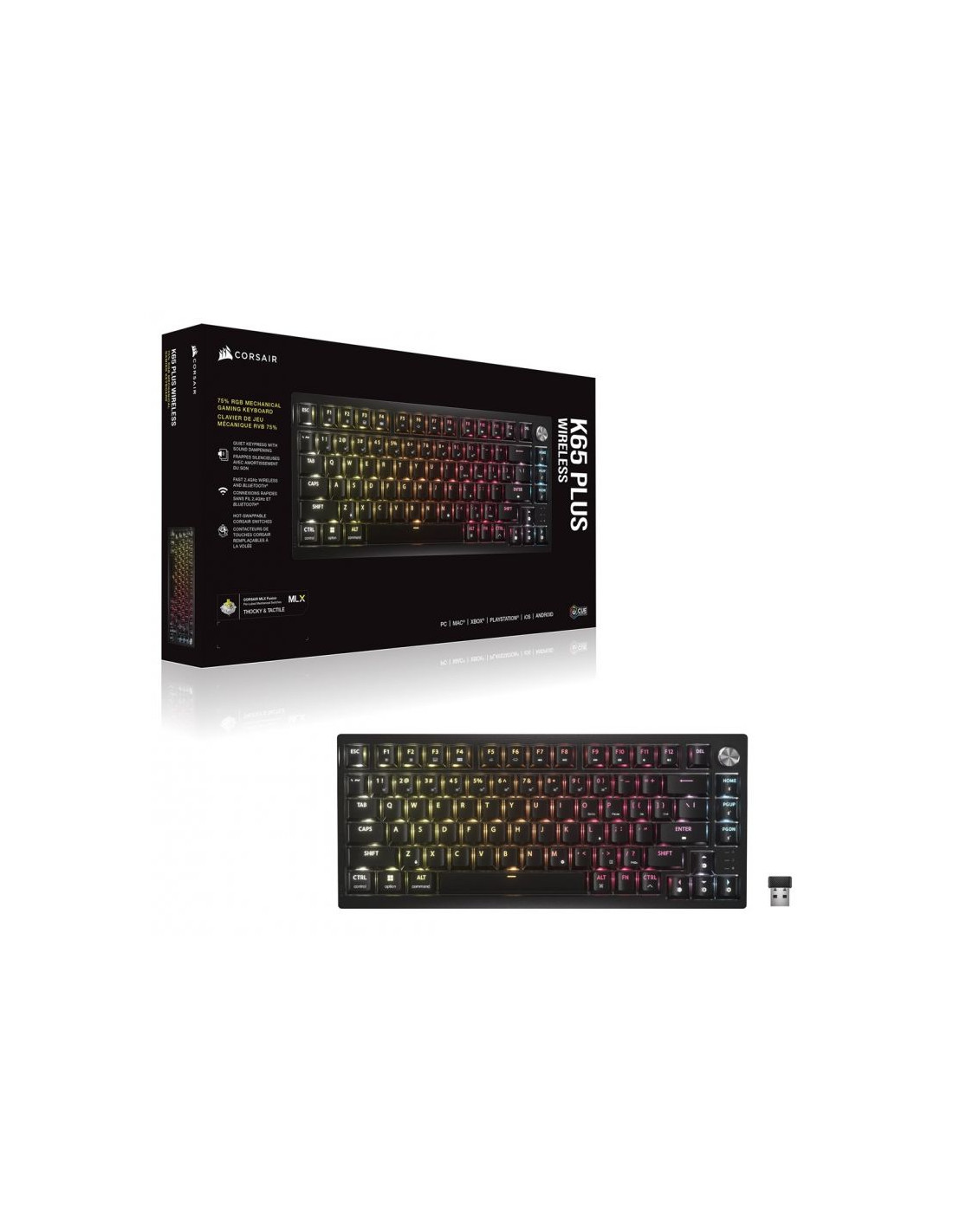 Bezprzewodowa klawiatura do gier tkl corsair k65 plus, tkl (75%), corsair mlx fusion -, iso (de)