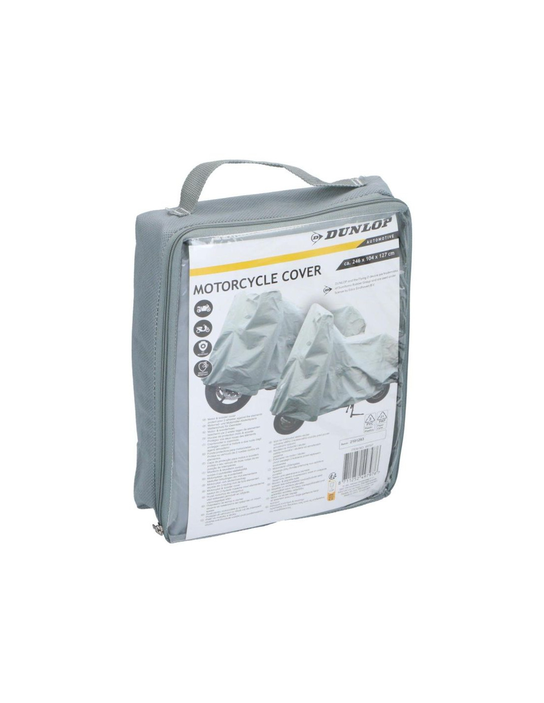 Pokrowiec na motor DUNLOP o wymiarach 2,46 x 1,04 x 1,27 m ochroni Twój jednoślad przed deszczem, śniegiem, kurzem i słońcem. Niezależnie od tego, czy parkujesz w garażu, czy na zewnątrz – ten pokrowiec gwarantuje skuteczną i trwałą osłonę w każdych warunkach.