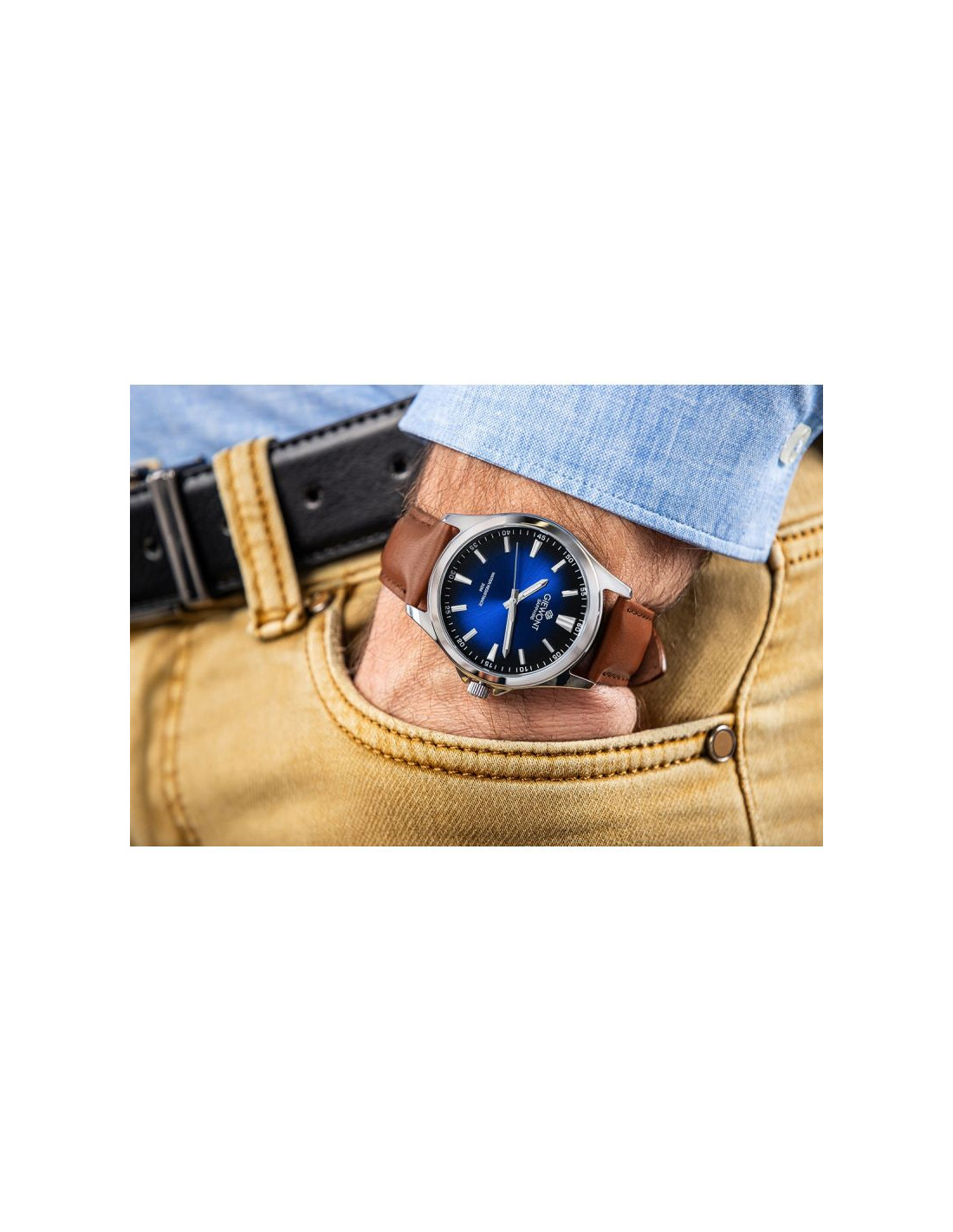 GIEWONT Elegance Sapphire to zegarek stworzony dla mężczyzn, którzy cenią sobie nienaganny styl, dobrą jakość wykonania i detale świadczące o dobrym guście. Jego głęboka, granatowa tarcza o subtelnym, promienistym gradiencie natychmiast przyciąga wzrok i nadaje całości wyjątkowego, prestiżowego charakteru, a odporne na zarysowania szafirowe szkło gwarantuje, że czasomierz zachowa swój nienaganny wygląd przez wiele lat intensywnego użytkowania. Precyzyjne, metaliczne indeksy i smukłe wskazówki zapewniają doskonałą czytelność nawet w trudnych warunkach oświetleniowych, podkreślając jednocześnie elegancki charakter zegarka. Solidna koperta w srebrnym połysku harmonijnie współgra z miękkim, klasycznym skórzanym paskiem, który idealnie dopasowuje się do nadgarstka i sprawia, że noszenie zegarka jest czystą przyjemnością. To uniwersalny, ponadczasowy model, który doskonale sprawdzi się zarówno podczas spotkań biznesowych, formalnych uroczystości, jak i w codziennych stylizacjach, dodając pewności siebie oraz wyrafinowania. GIEWONT Elegance Sapphire to nie tylko stylowy dodatek – to symbol elegancji, dbałości o detale i świadomy wybór mężczyzny, który wie, czego oczekuje od swojego czasu i od swojego stylu.